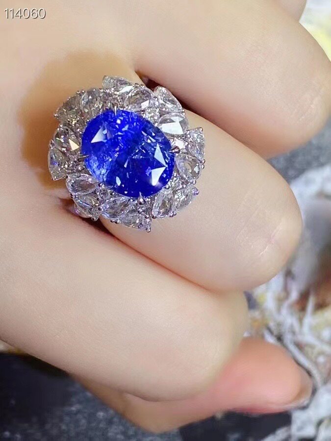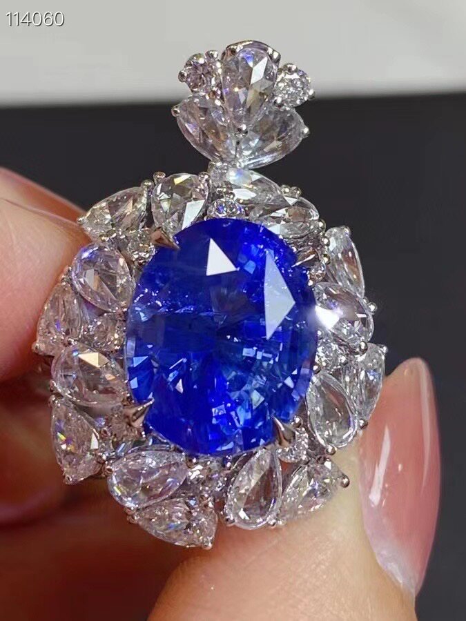 Готово на складе, кольцо и подвеска с необожженным сапфиром 18 карат для двух целей, яркие и богатые, сапфиры 10 карат, бриллианты 2,677 карата, вес 12 грамм, 230 000 юаней, поддержка возврата и обмена.