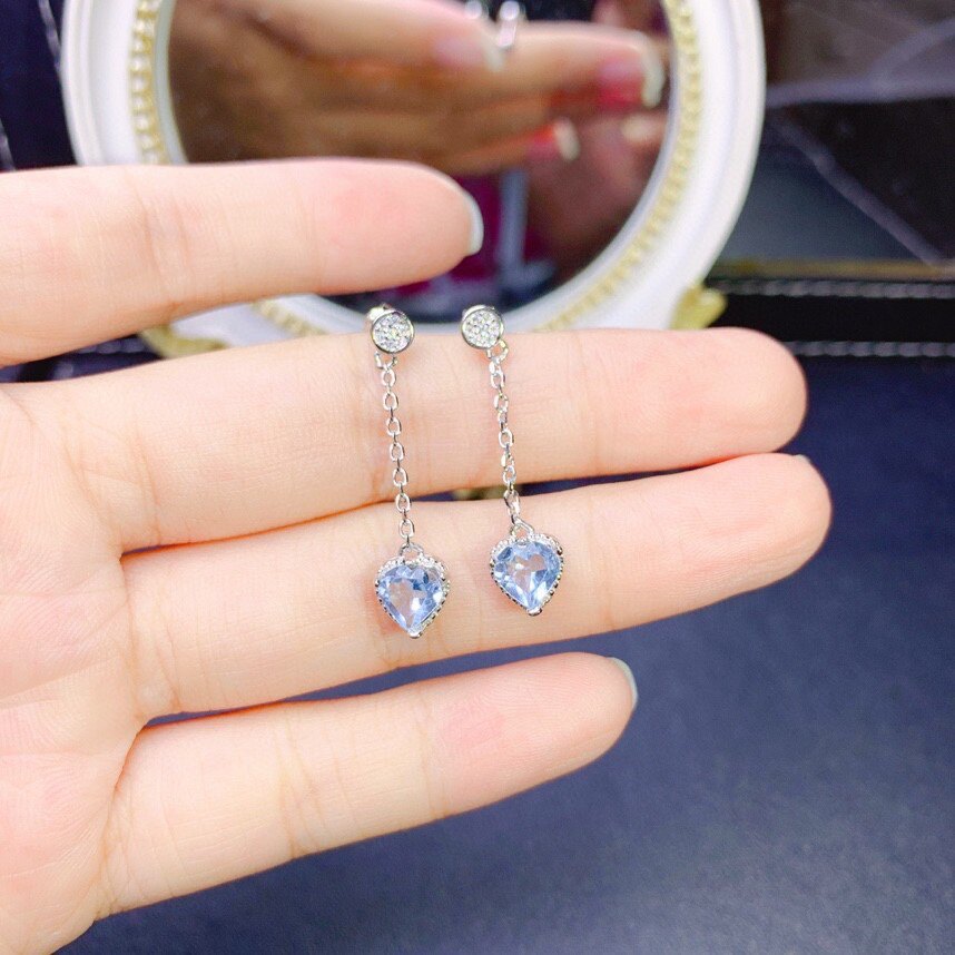 Натуральные сапфировые серьги, инкрустация камня, серебро 925 пробы, 6mm