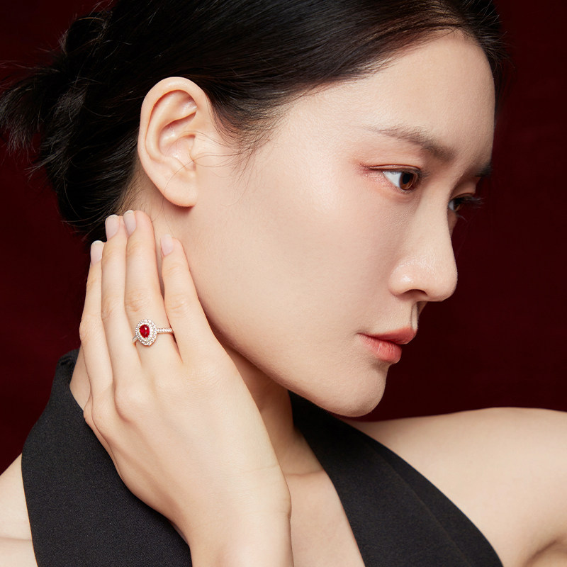 Натуральное ювелирное украшение, рубиновое кольцо с камнем, бриллиантовая инкрустация камня, золото 750 пробы