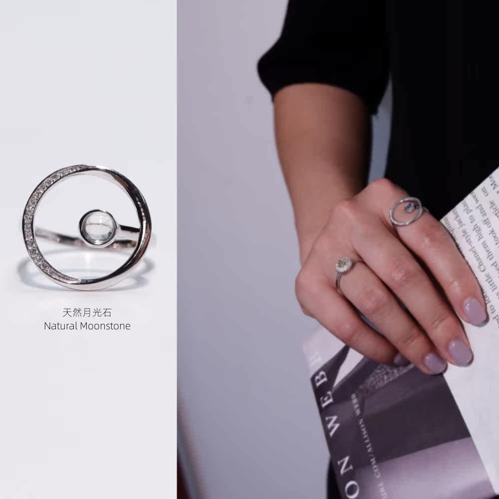 Небольшое дизайнерское натуральное кольцо с камнем, лунный камень, серебро 925 пробы, не выцветает, с драгоценным камнем, на указательный палец