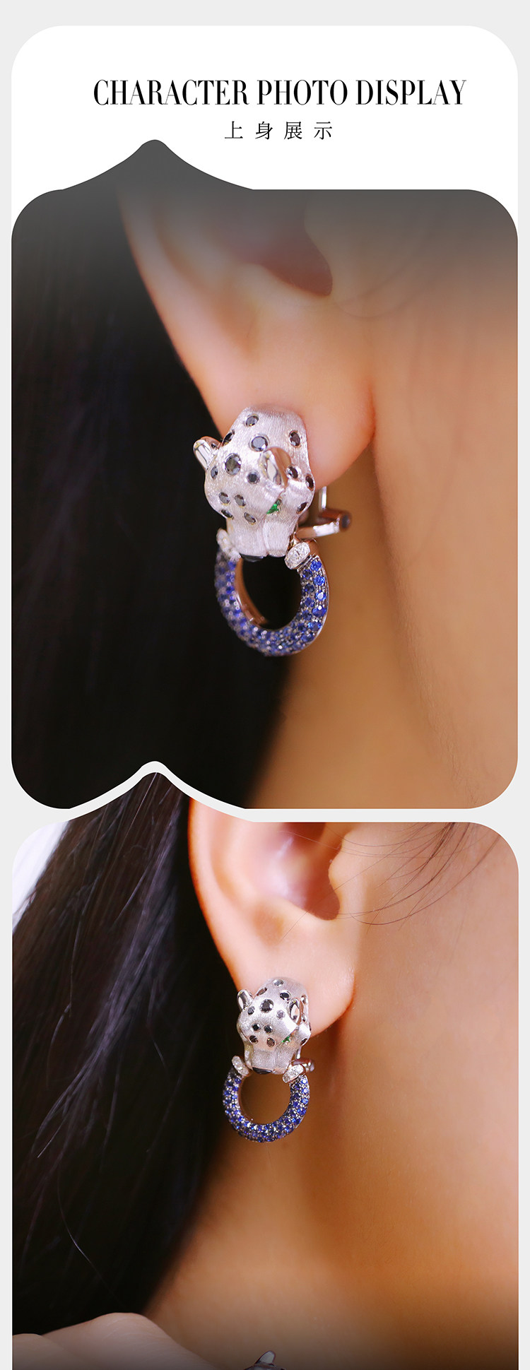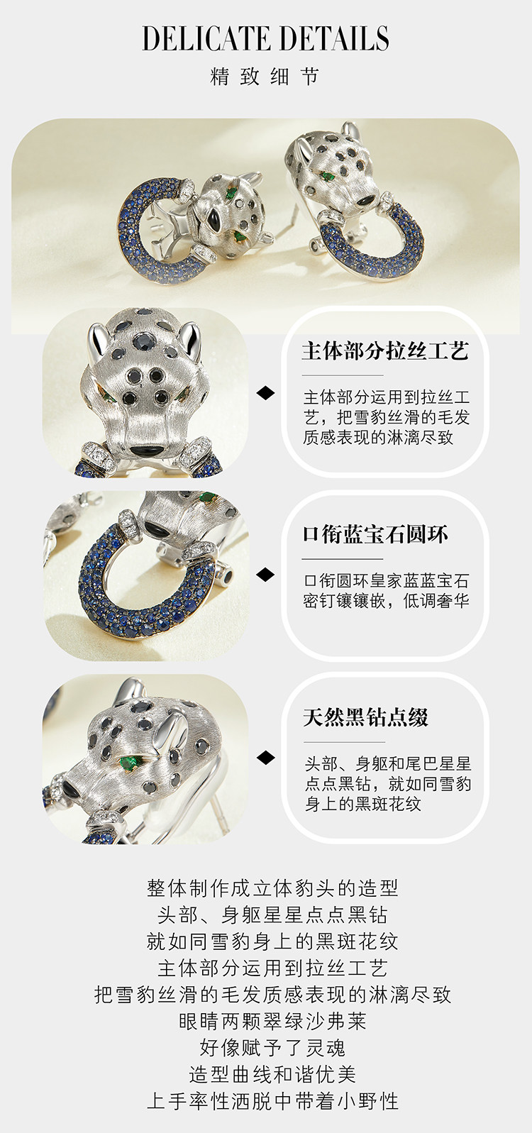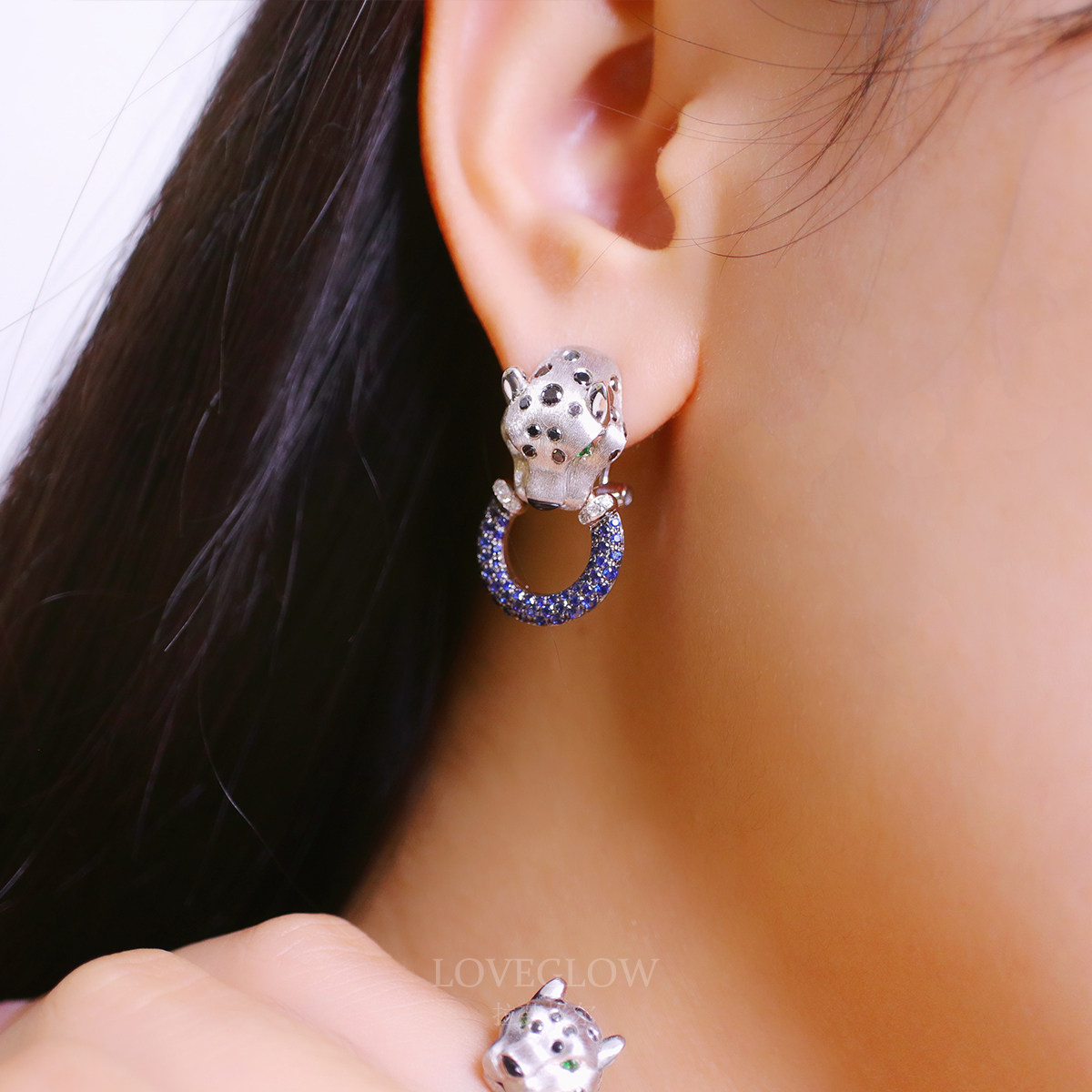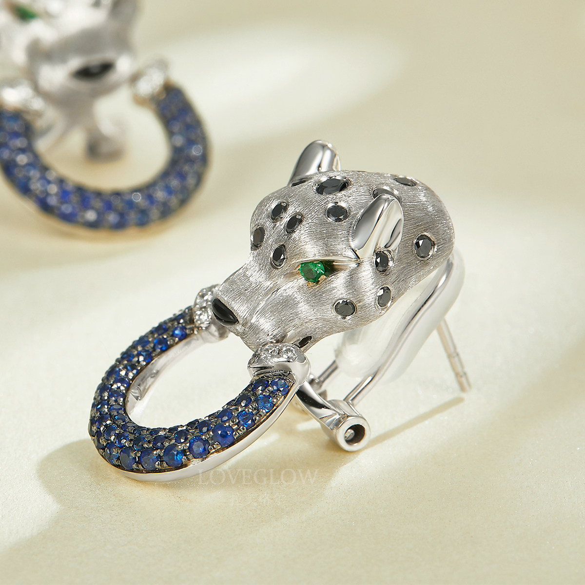 Сапфировые матовые платиновые серьги, трехмерная ретро инкрустация камня, золото 18 карат