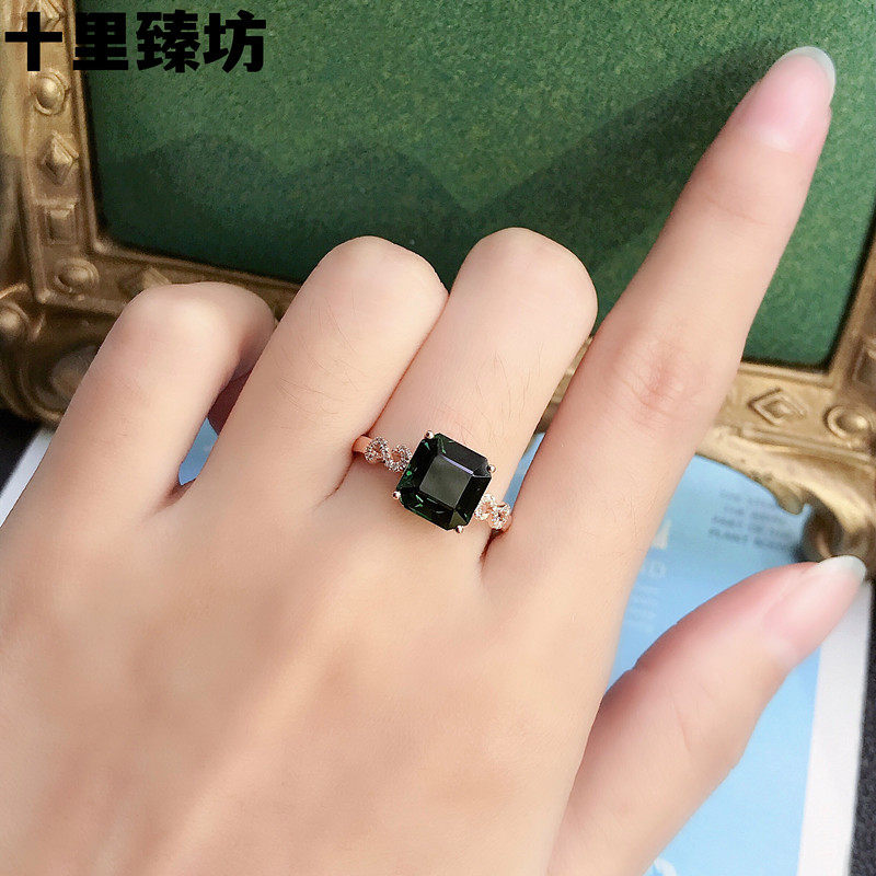 Натуральное квадратное ювелирное украшение, турмалиновое кольцо, золотая инкрустация камня, 18 карат, розовое золото, с драгоценным камнем