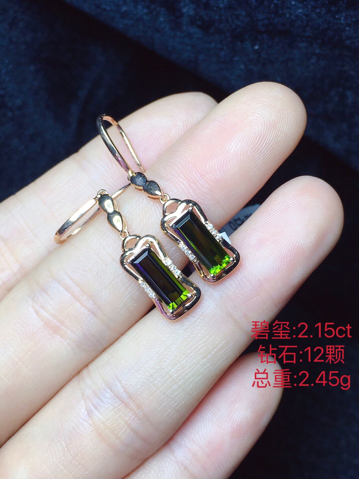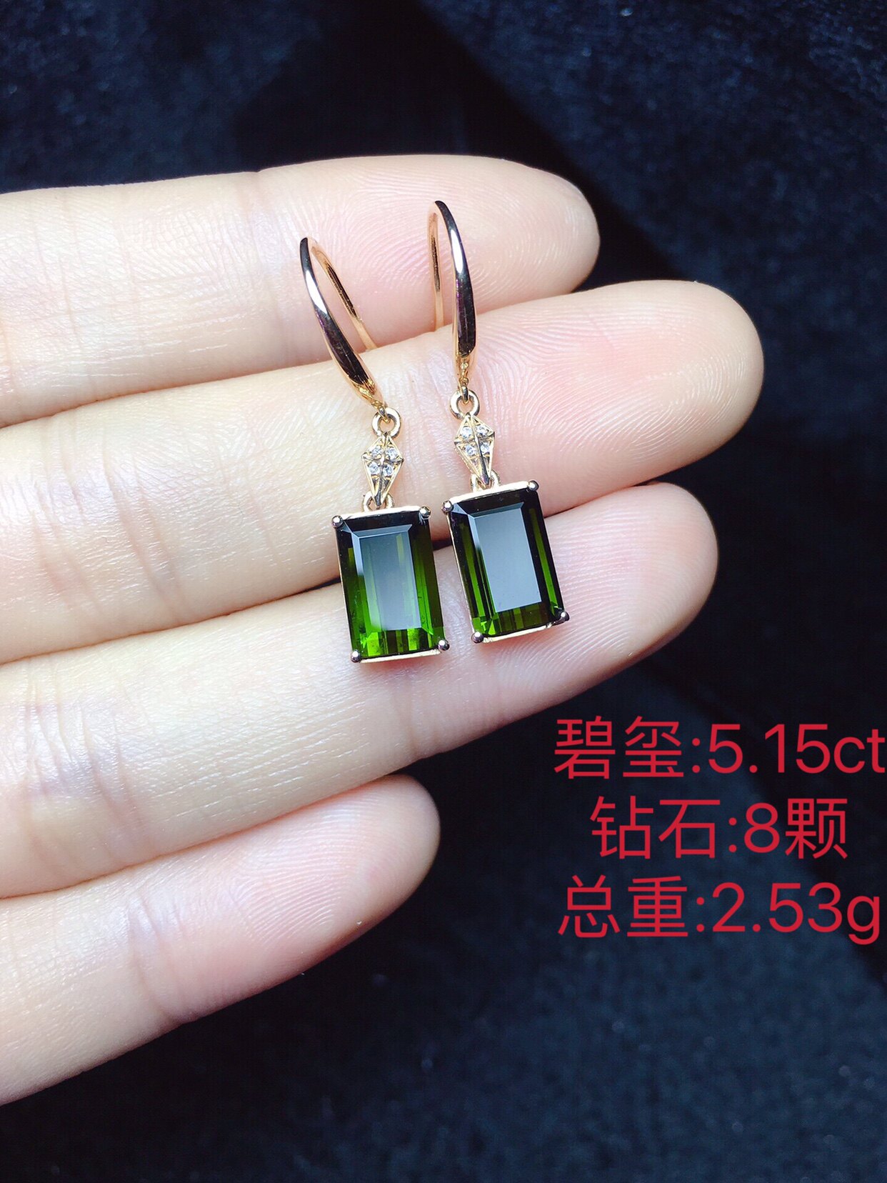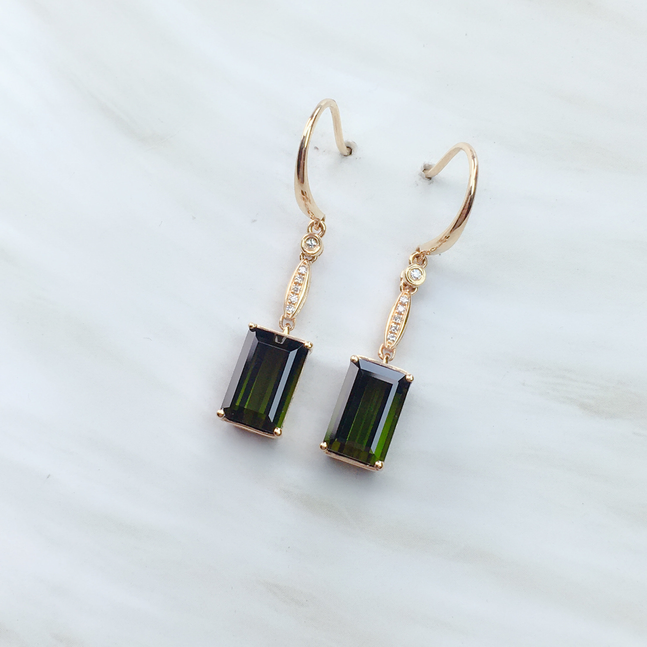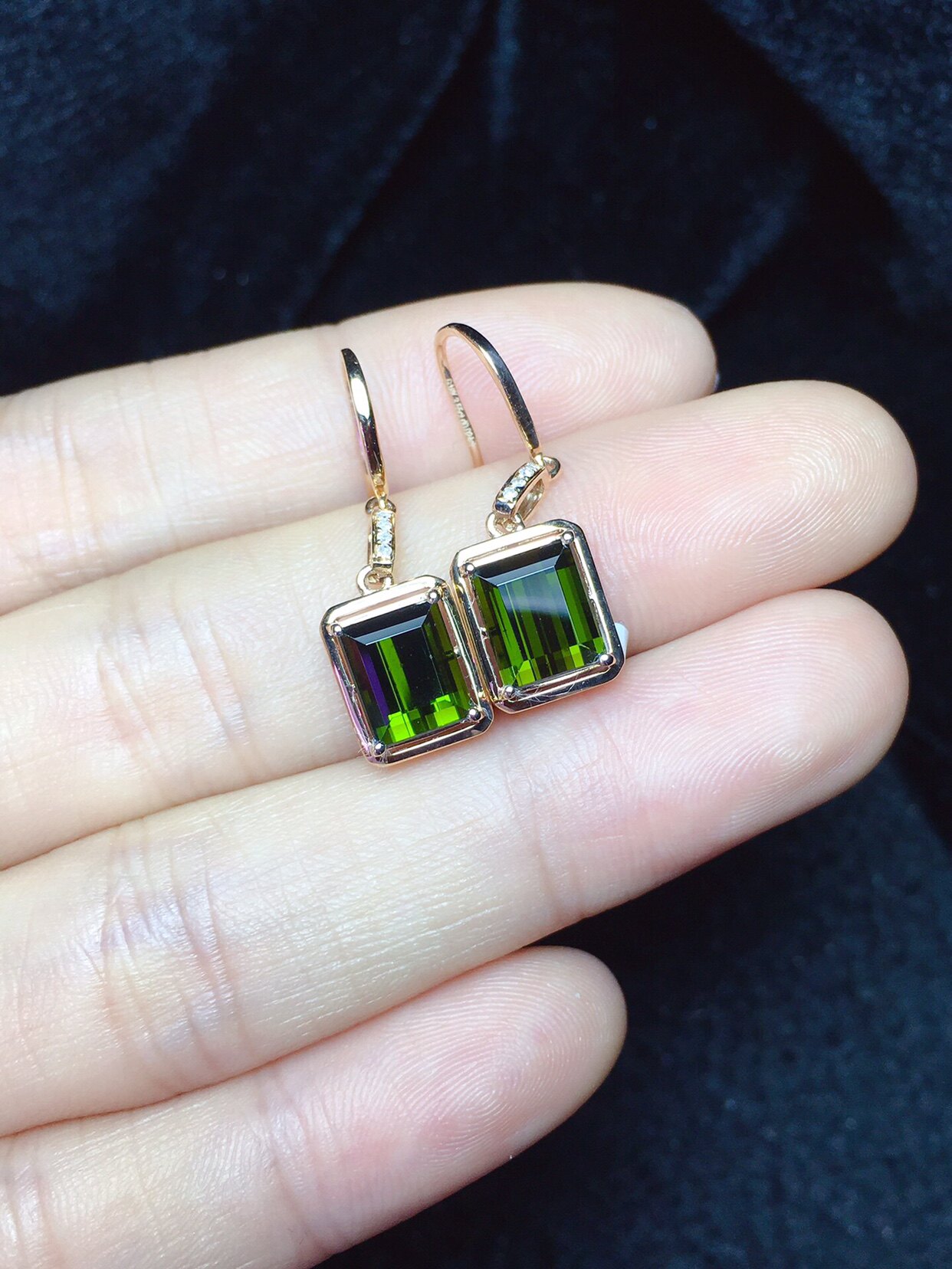 Натуральная инкрустация камня, турмалиновые квадратные серьги изумруд, золото 750 пробы, с драгоценным камнем