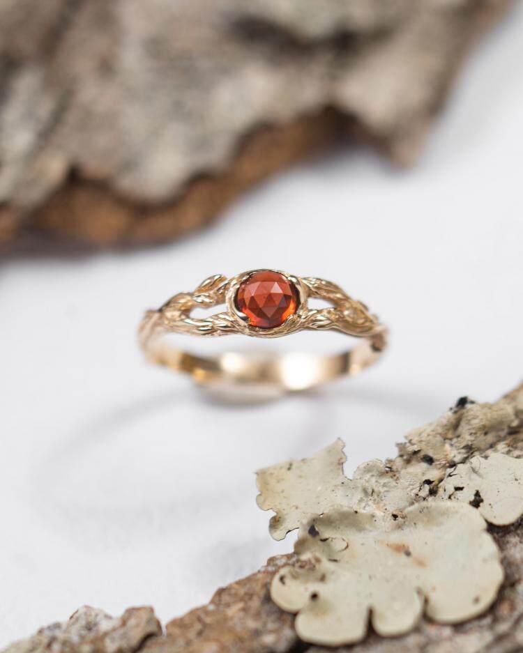 Ретро натуральная инкрустация камня из граната, кольцо, DIY, 14 карат