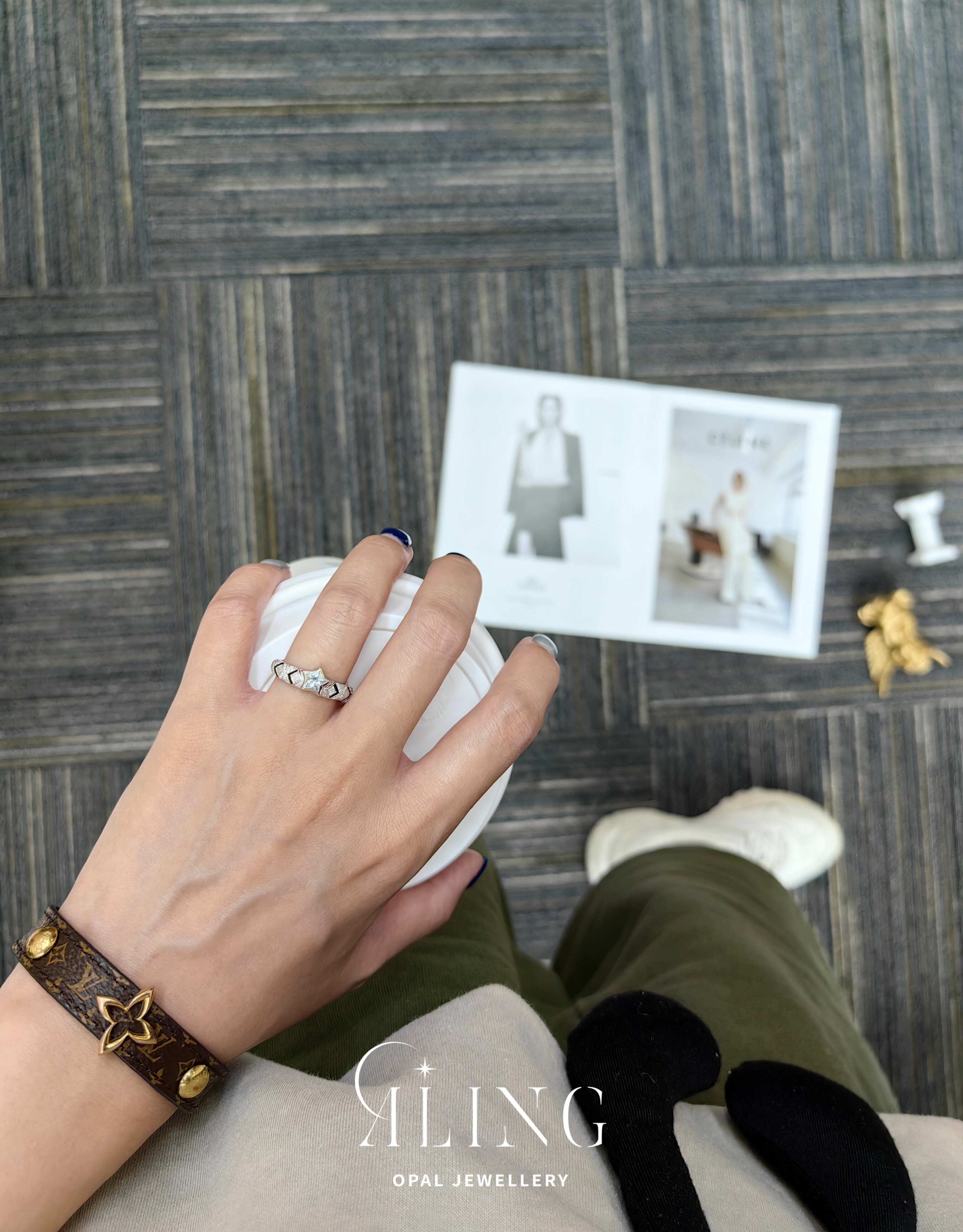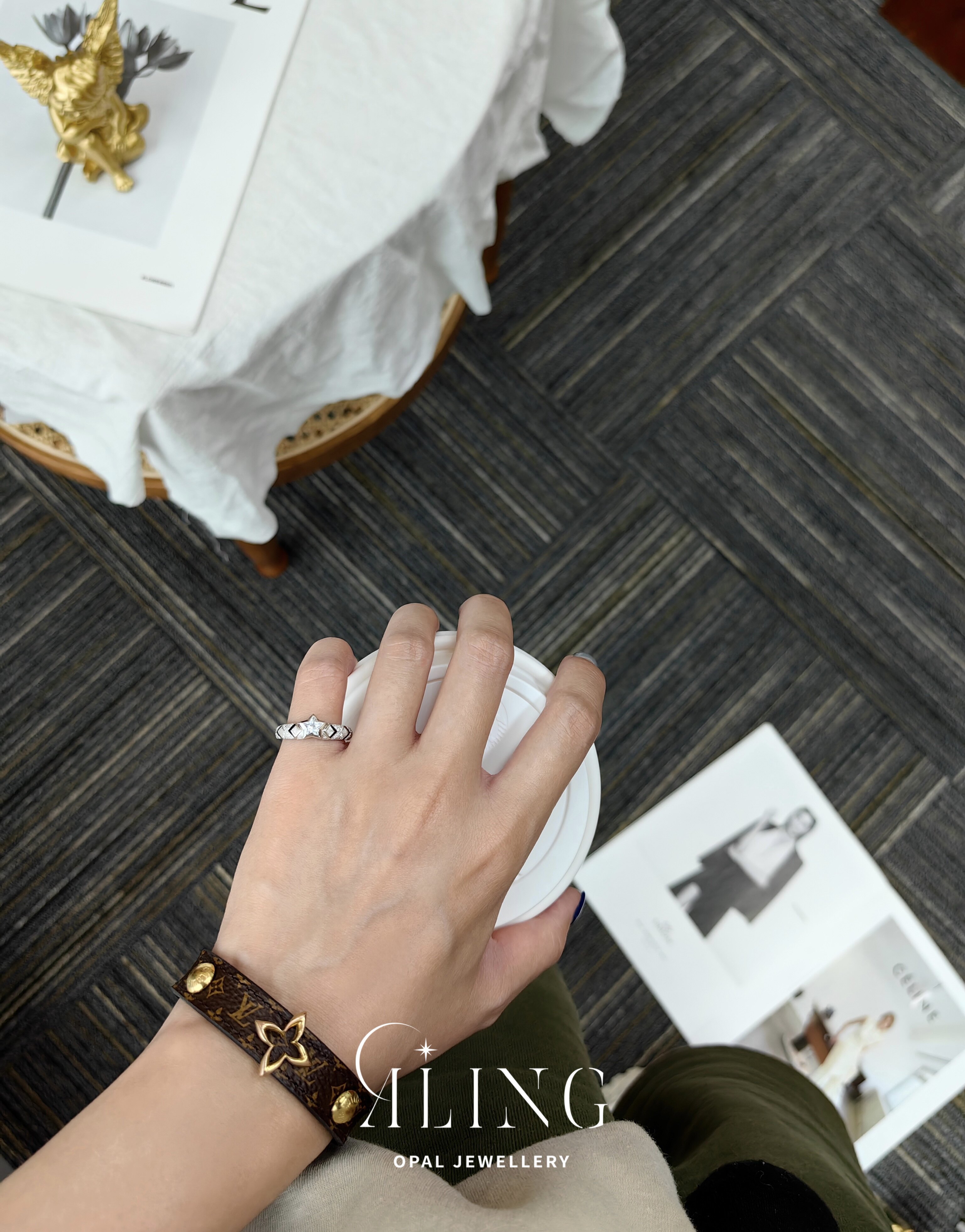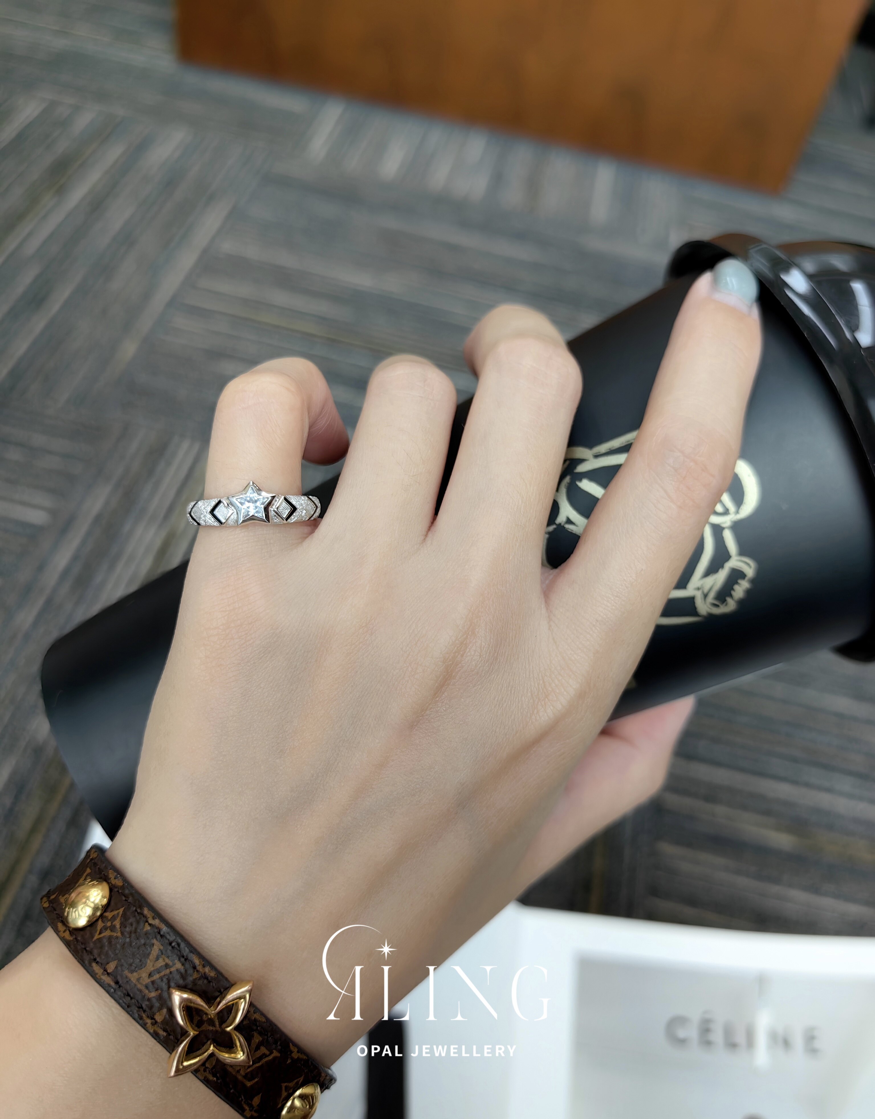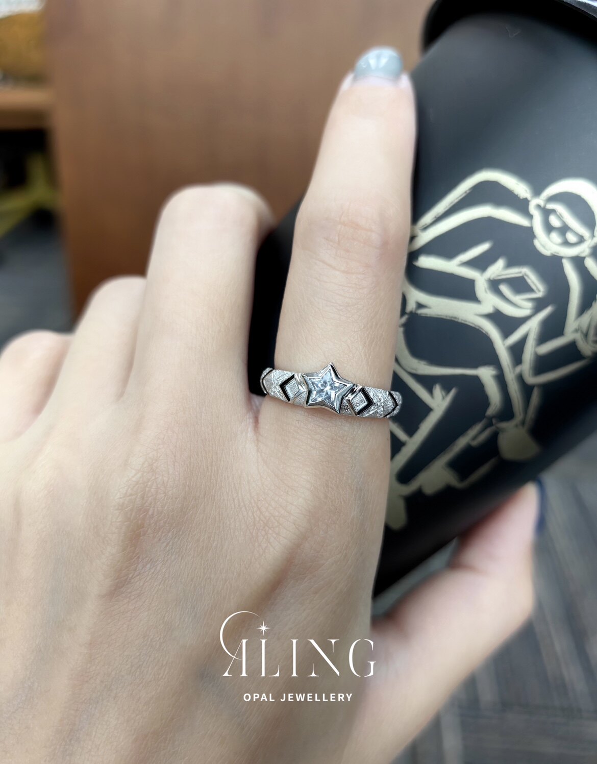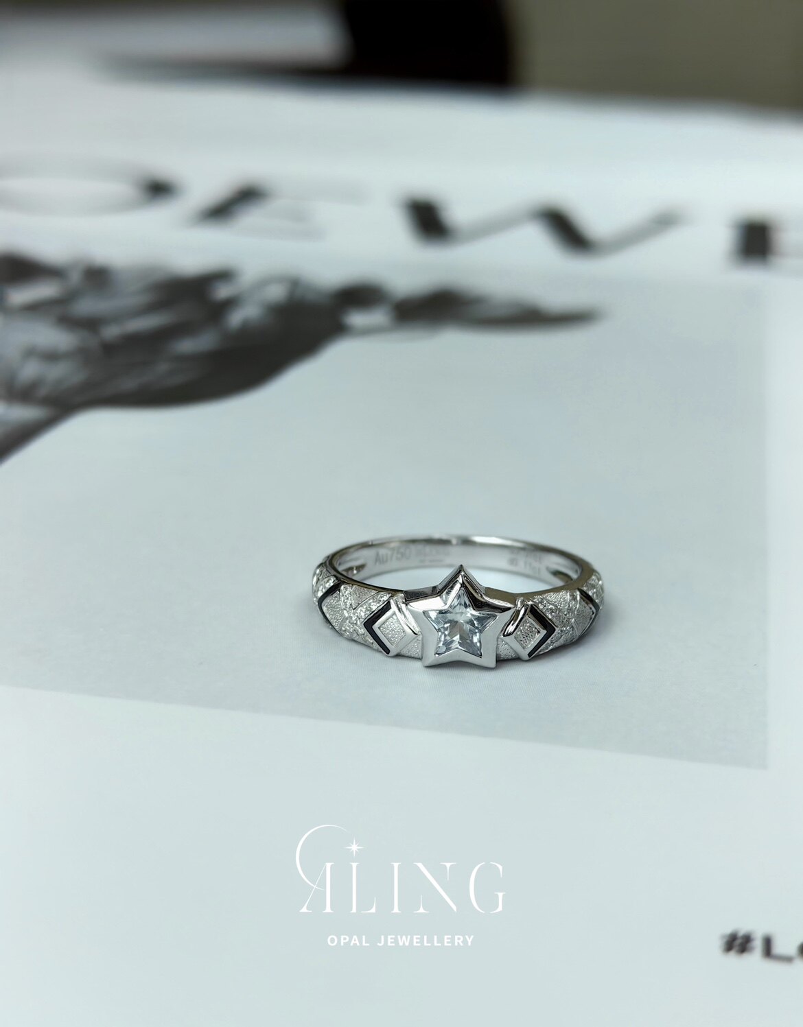 Оригинальный дизайн | Кольцо ALING OPAL JEWELLERY с белым сапфиром и звездой