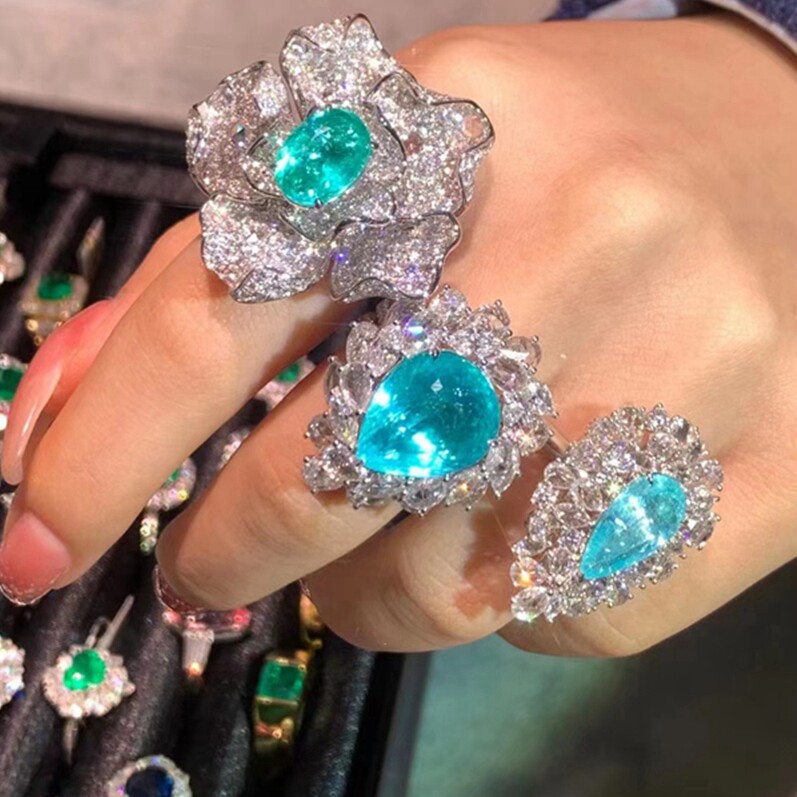 Бразильский неоновый голубой параба турмалиновый женский кольцо натуральное цвет драгоценные камни обнаженные кольца