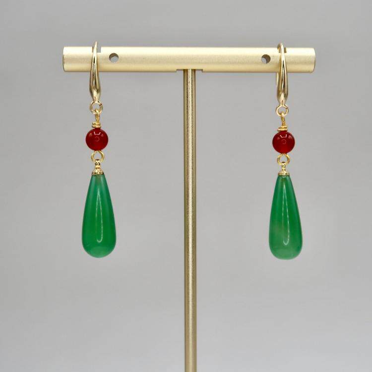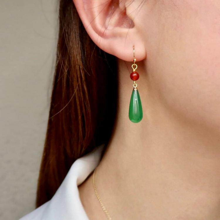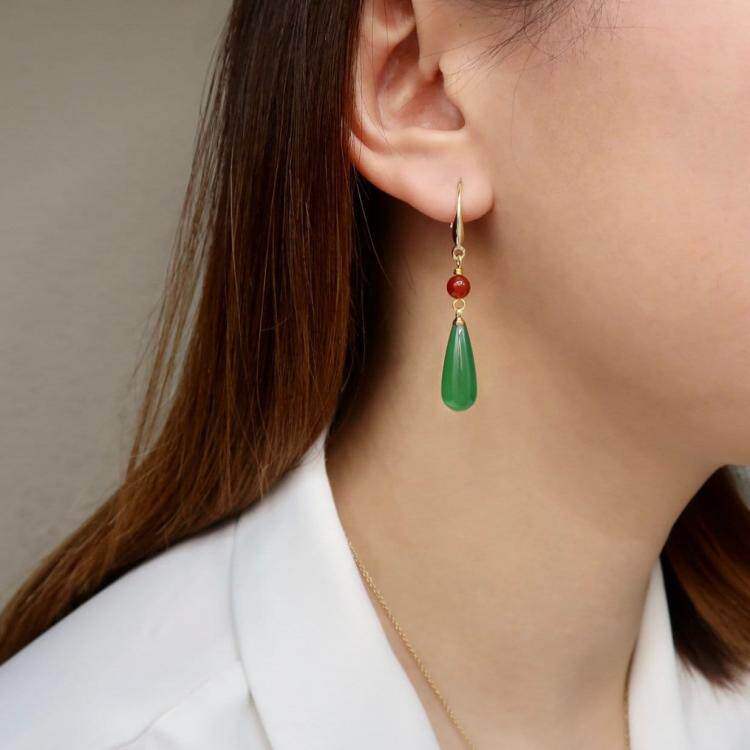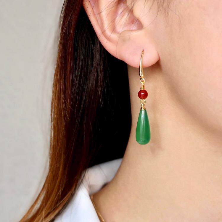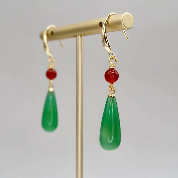 Серьги для покупок США ▼ движущийся замок, который представляет собой ручную хэл, вдохновленный зеленый халцедон красный халцедон