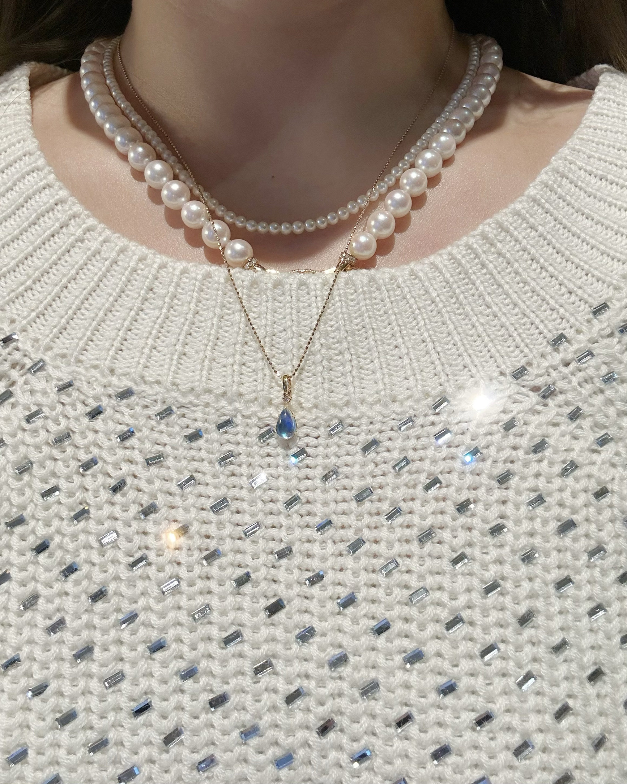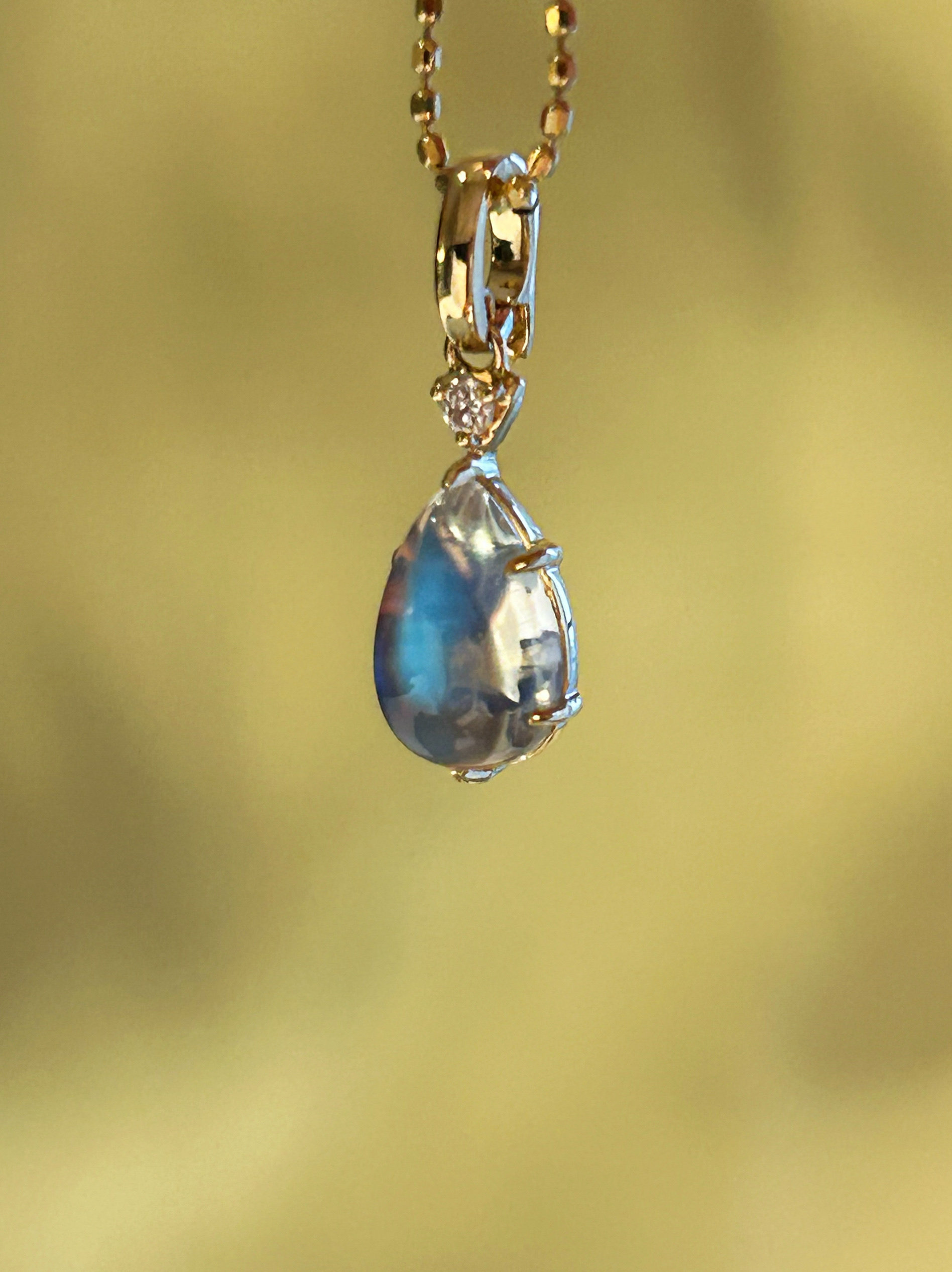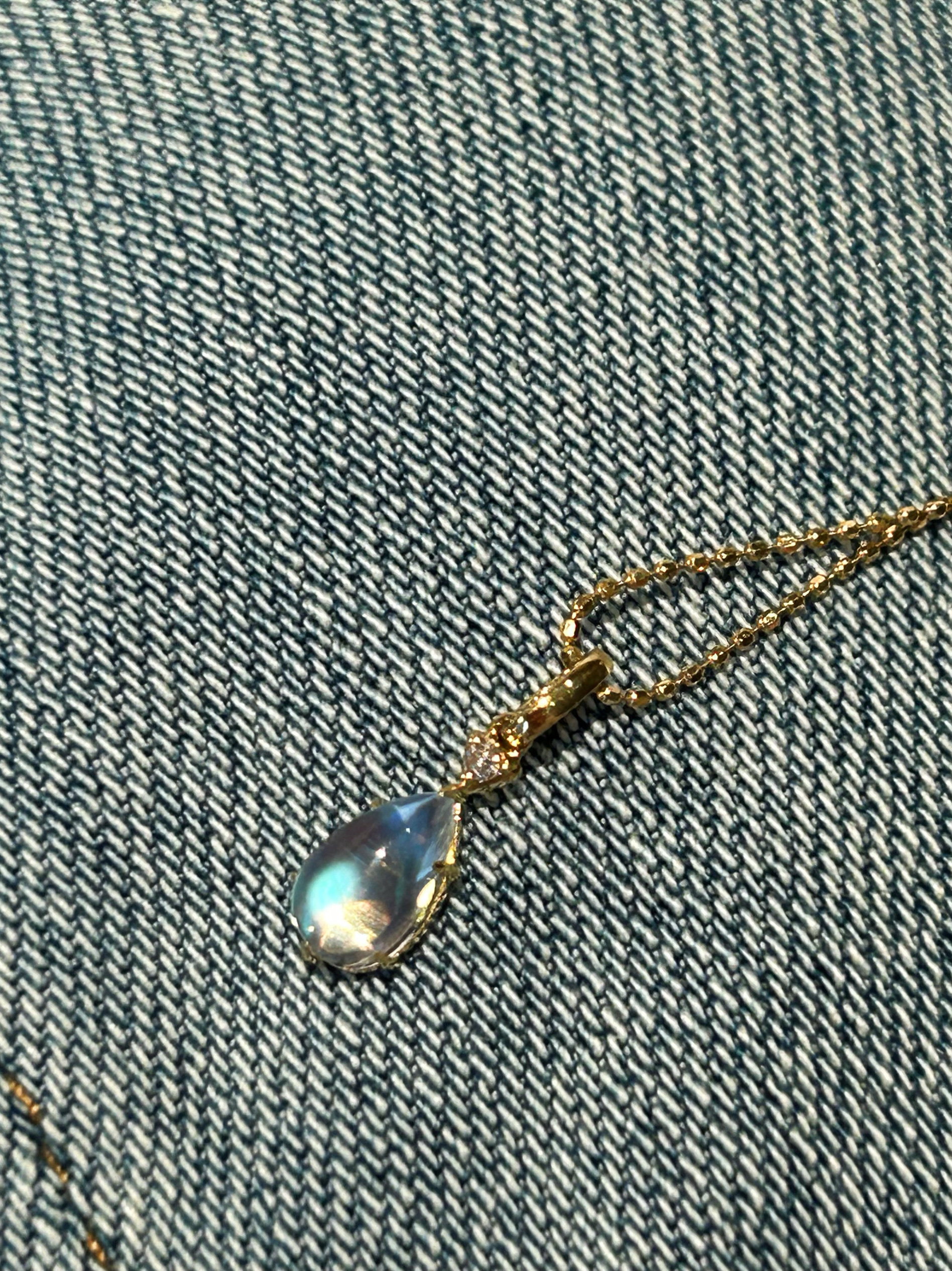 Бриллиантовая универсальная синяя подвеска, золото 750 пробы, лунный камень