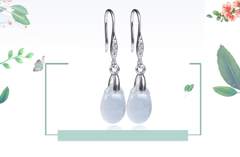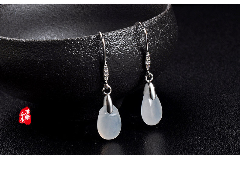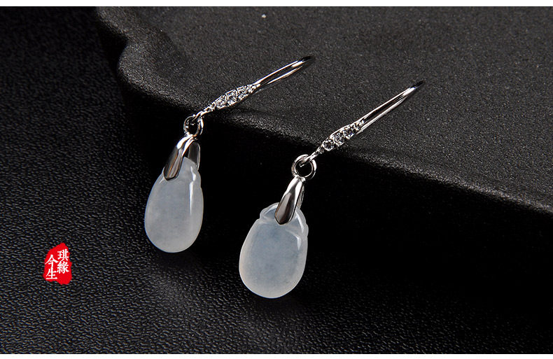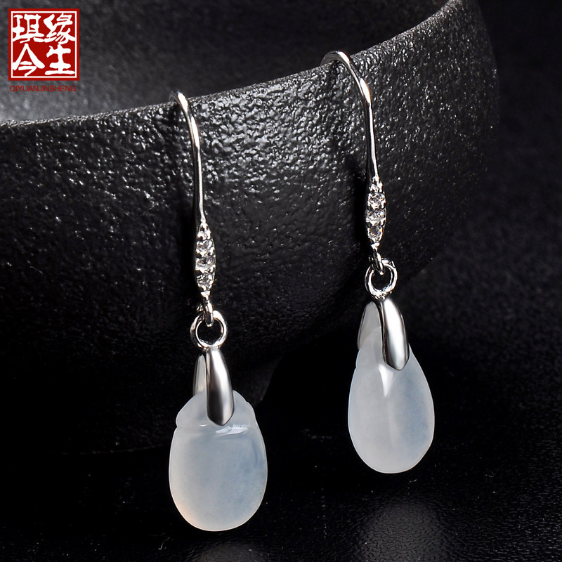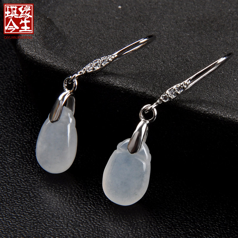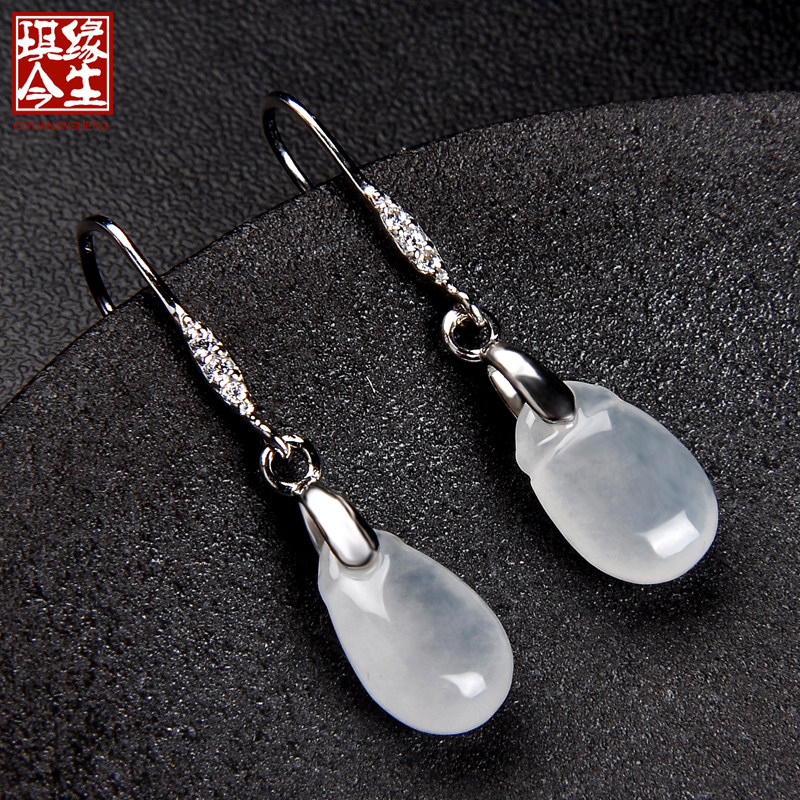 琪缘今生 Натуральный нефрит, серьги, изумрудный прозрачный камень, серебро 925 пробы, имитация льда