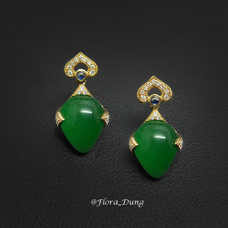 Дизайнерские изумрудные серьги, изумрудный ретро треугольник в форме сердца, 18 карат