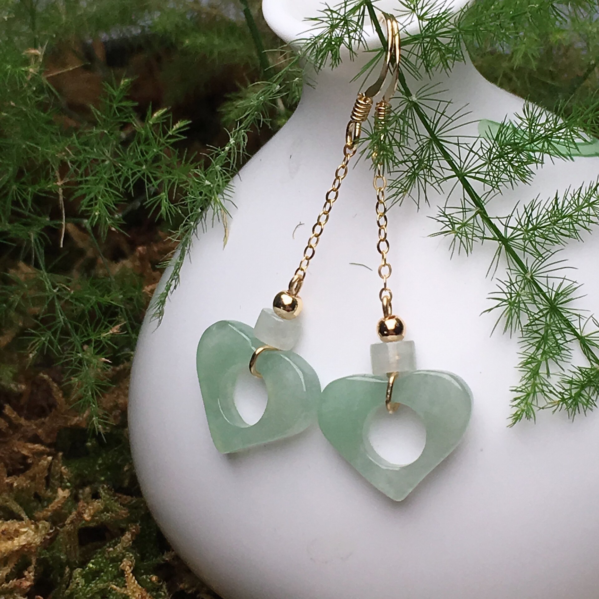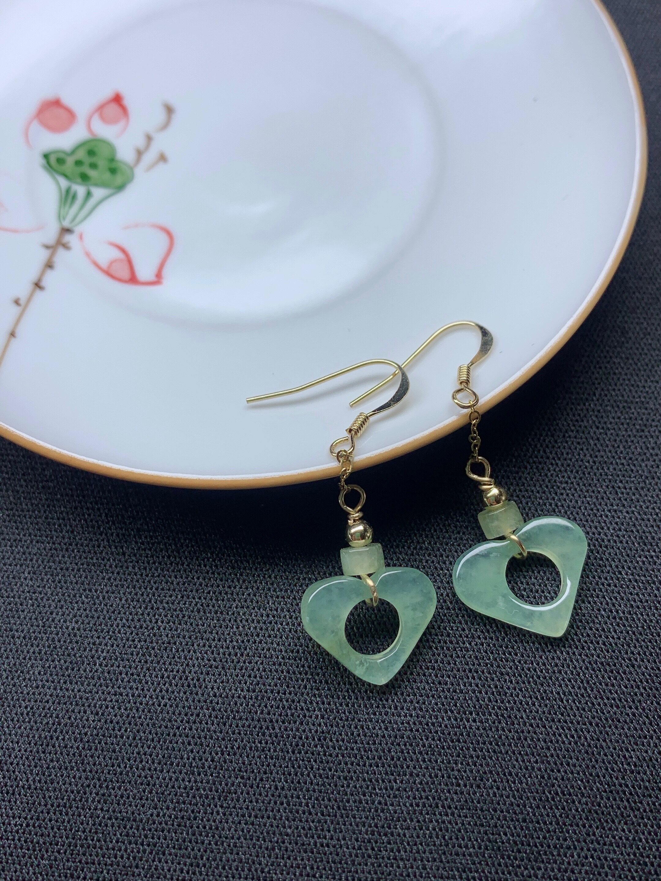 Натуральный нефрит, реплика, серьги из Мьянмы из нефрита, 14 карат, женский стиль