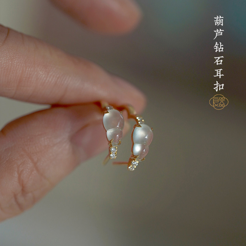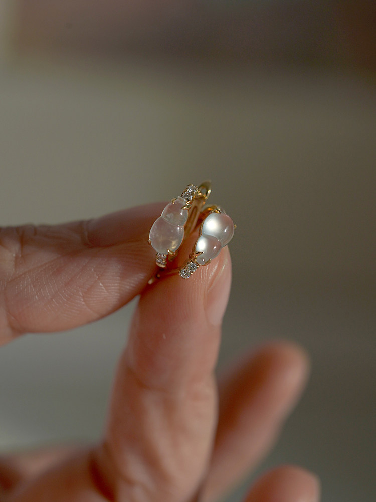 Изумрудные серьги из нефрита, флуоресцентная стеклянная изумрудная реплика, золото 18 карат