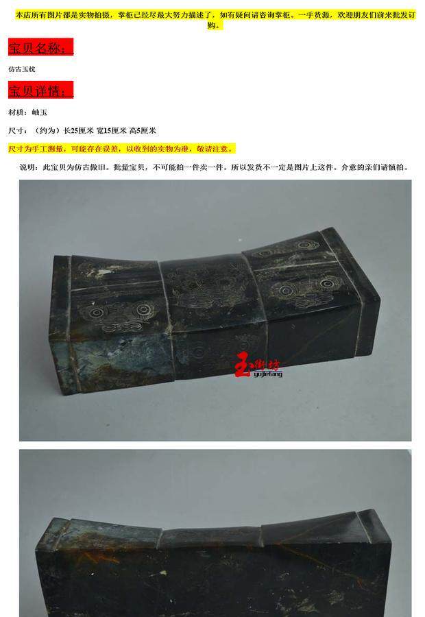 Антиквариат Разнозначная нефритовая посуда старая нефритовая подушка Liangzhu подушка Liangzhu культура нефритовое нефритовое нефритовое оптом