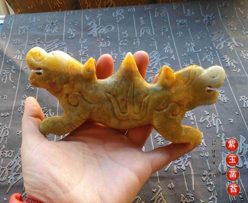 Gu Jade Lao Jad Antique Храм Zhenyu Step Lage Plaza Shanzi Два двойной головы бесплатная доставка 011713