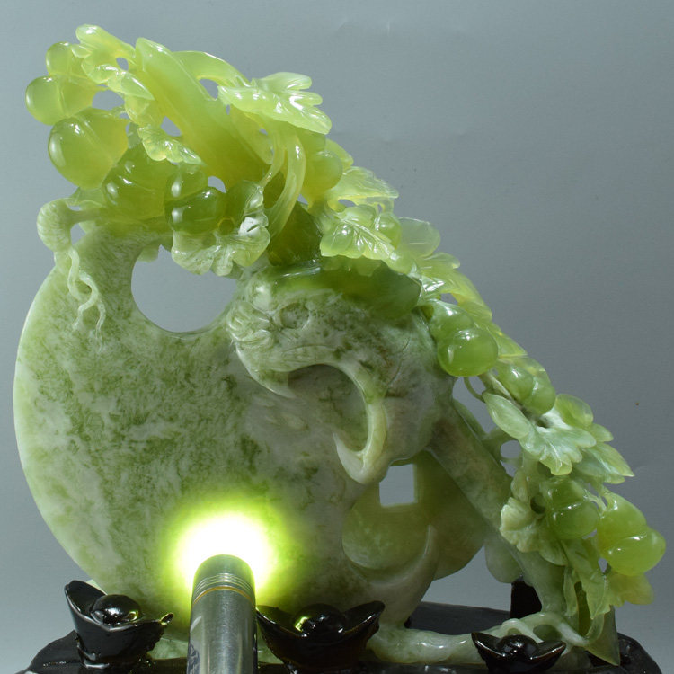 От поколения в поколение, есть благословение нефритового дракона -орнамент из естественной распыленной резной тыквы резной куски Liaoning Xiuyanjia Cuiyuan Stone Coney Living Room