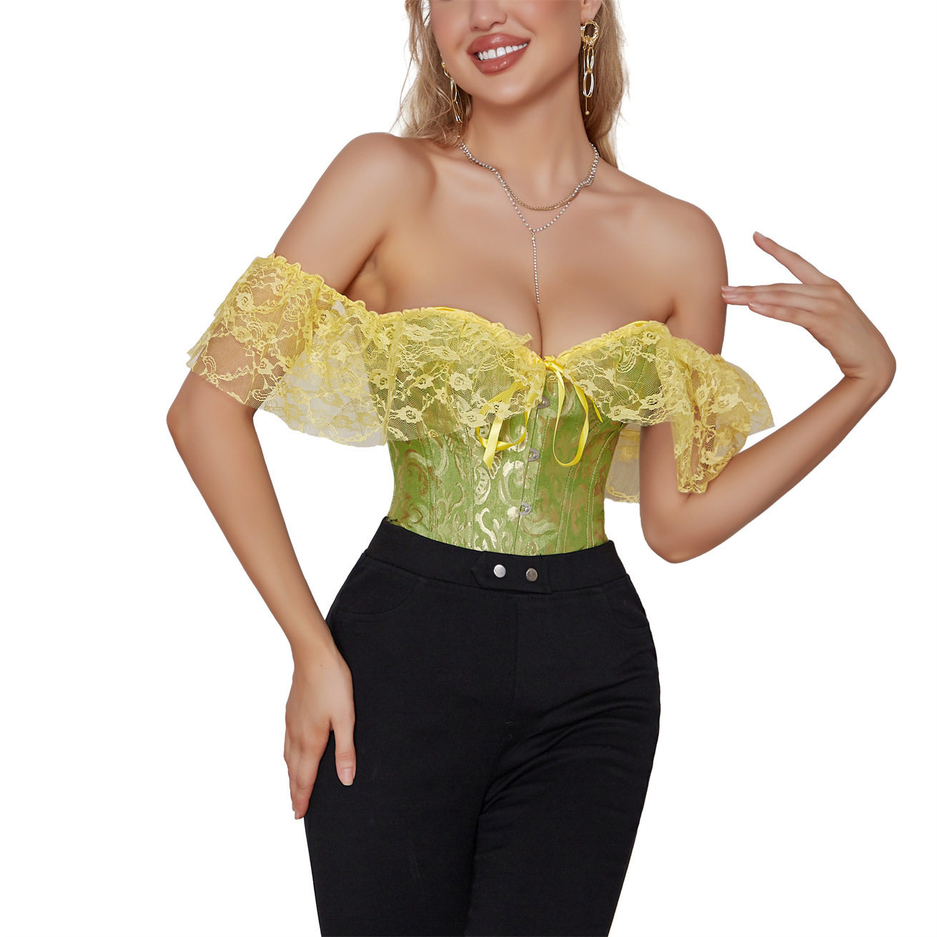 Новинка 2025 года, виниловый жаккардовый кружевной дворец для контроля живота, талии, поддержки груди, формирующий внешний топ для женщин