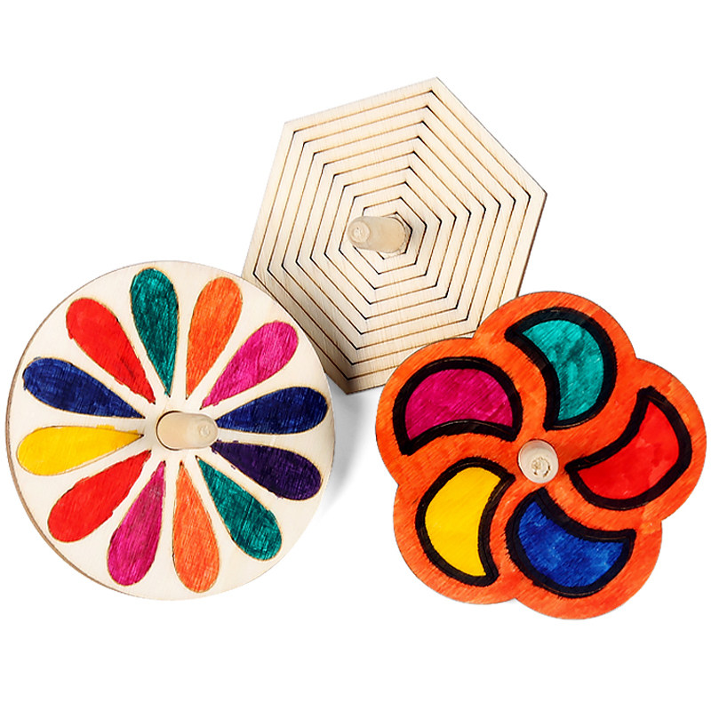 Деревянный волчок для детского сада для друга, окрашенная игрушка, DIY, 12 шт, ручной поворот, граффити