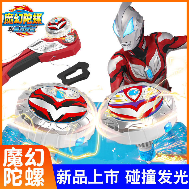 Ultra, волшебный Ультрамен Тига, волчок, крутящаяся файтинговая игрушка для мальчиков со шнуром, новая коллекция, сражение