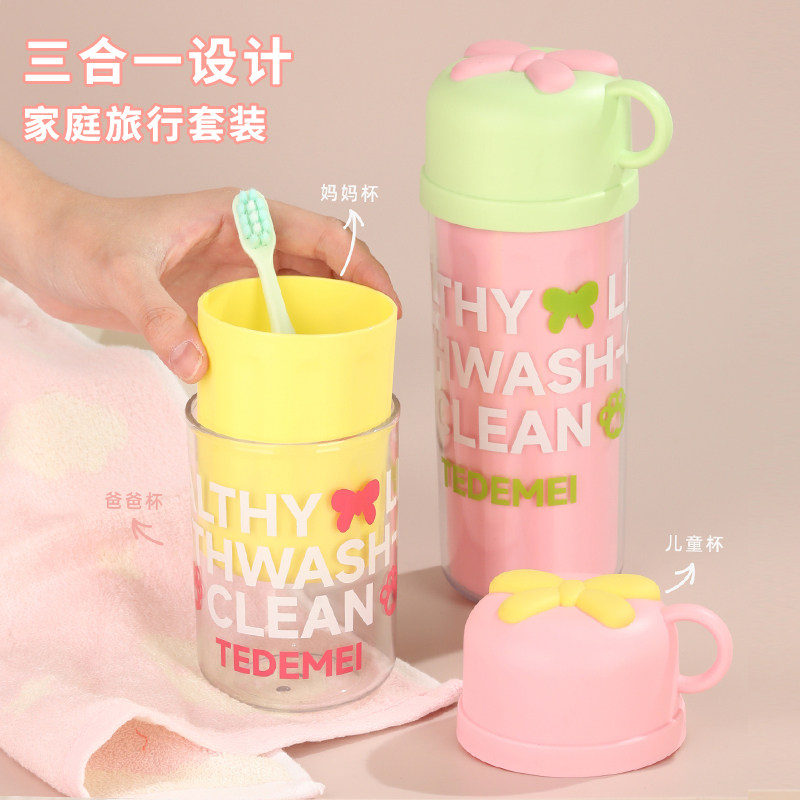 Детская портативная зубная щетка для путешествий, коробка для хранения, ополаскиватель для рта, «три в одном»