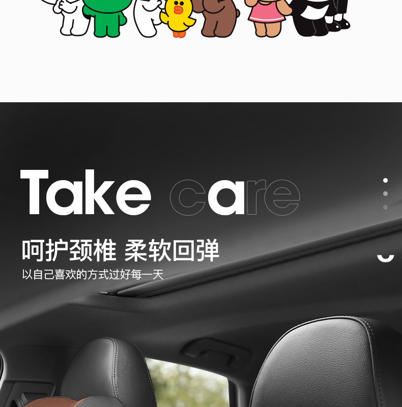 Linefriends Cartoon Car Head Head Carbone Carbone Car На подушке автомобиль автомобиль автомобиля для шеи подушка для шеи