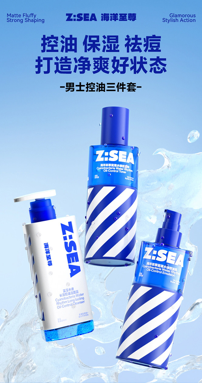 海洋至尊 Увлажняющий комплект для ухода за кожей, увлажняющее очищающее молочко, контроль жирного блеска, анти-акне, 3 предмета