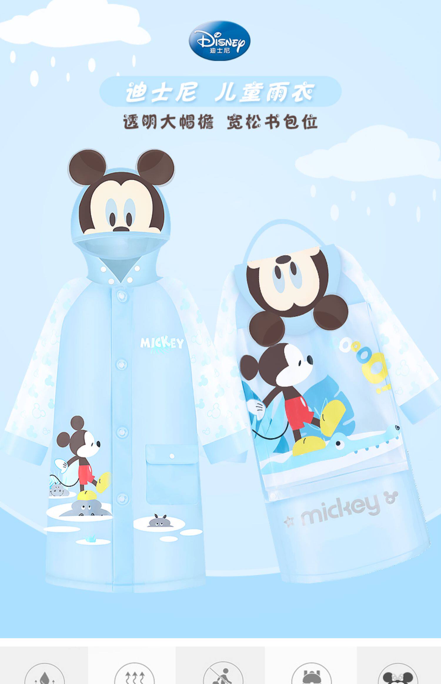 Дисней, дождевик для мальчиков, детский мультяшный ранец для раннего возраста, увеличенная толщина