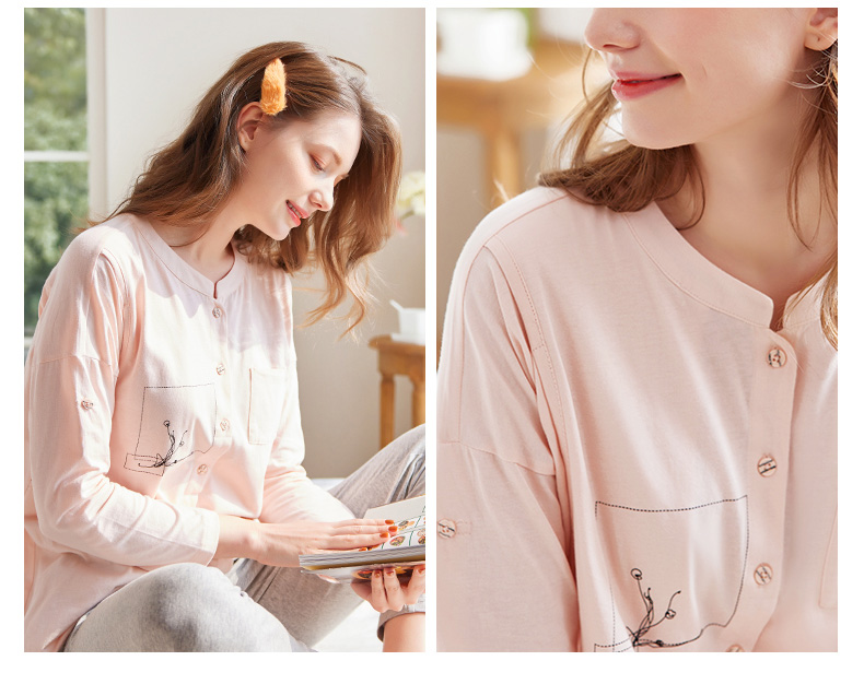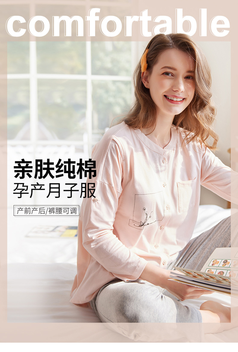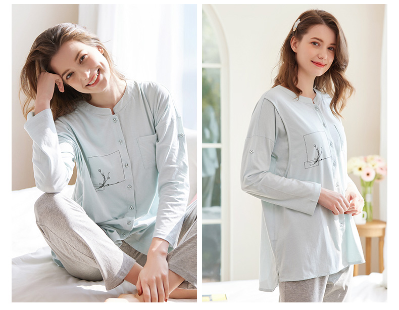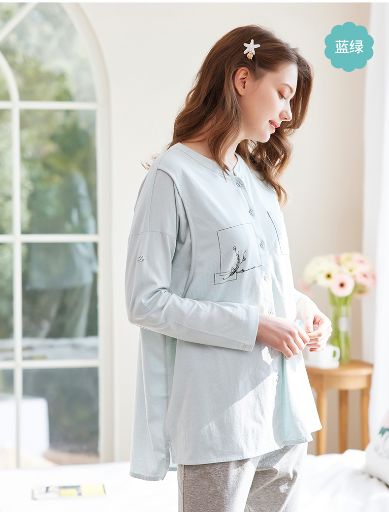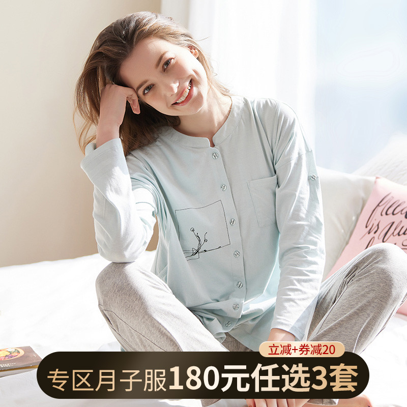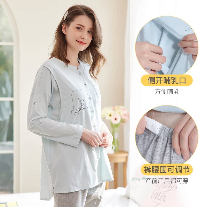 Демисезонная хлопковая пижама, ноябрьский послеродовой комплект для молодой матери для кормящих грудью, 10 мес.