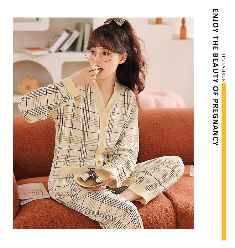 Демисезонная хлопковая послеродовая летняя тонкая пижама для кормящих грудью для беременных, 7 мес.