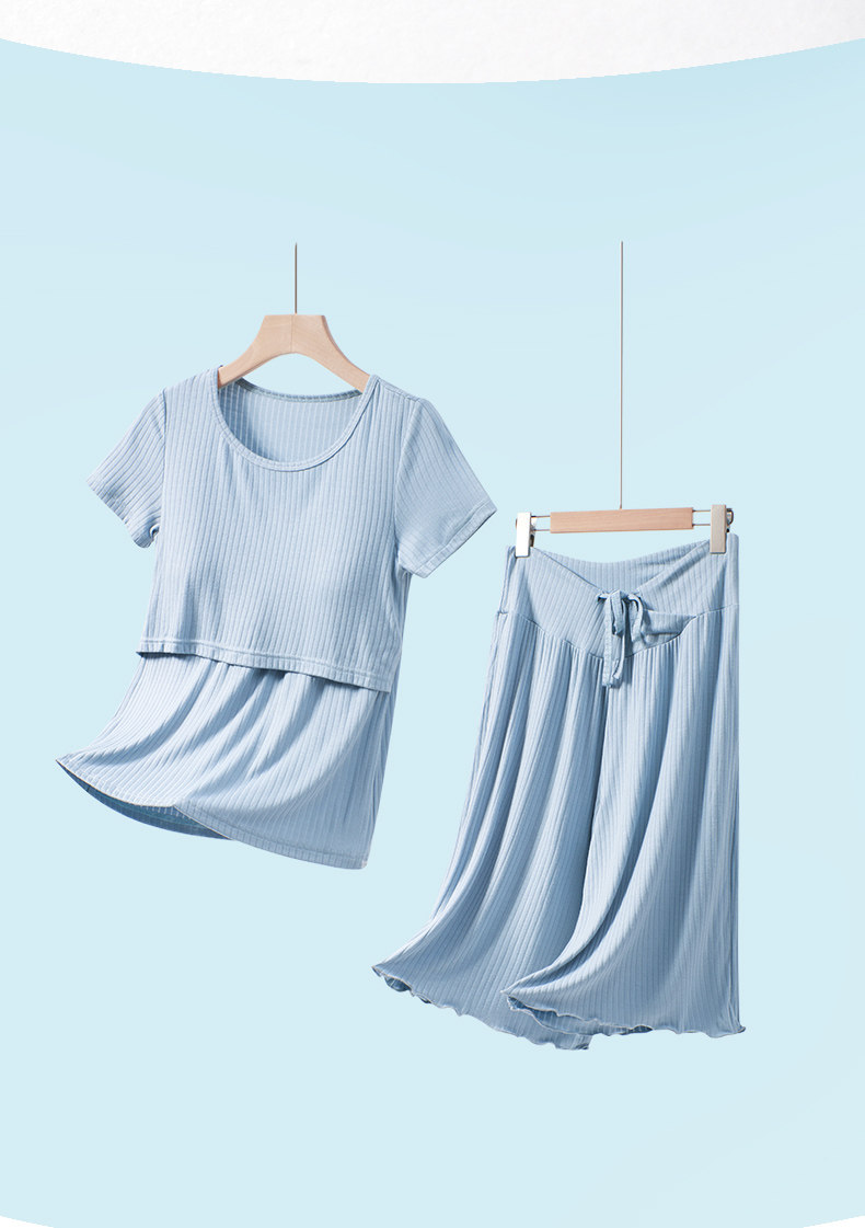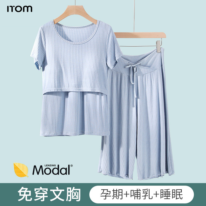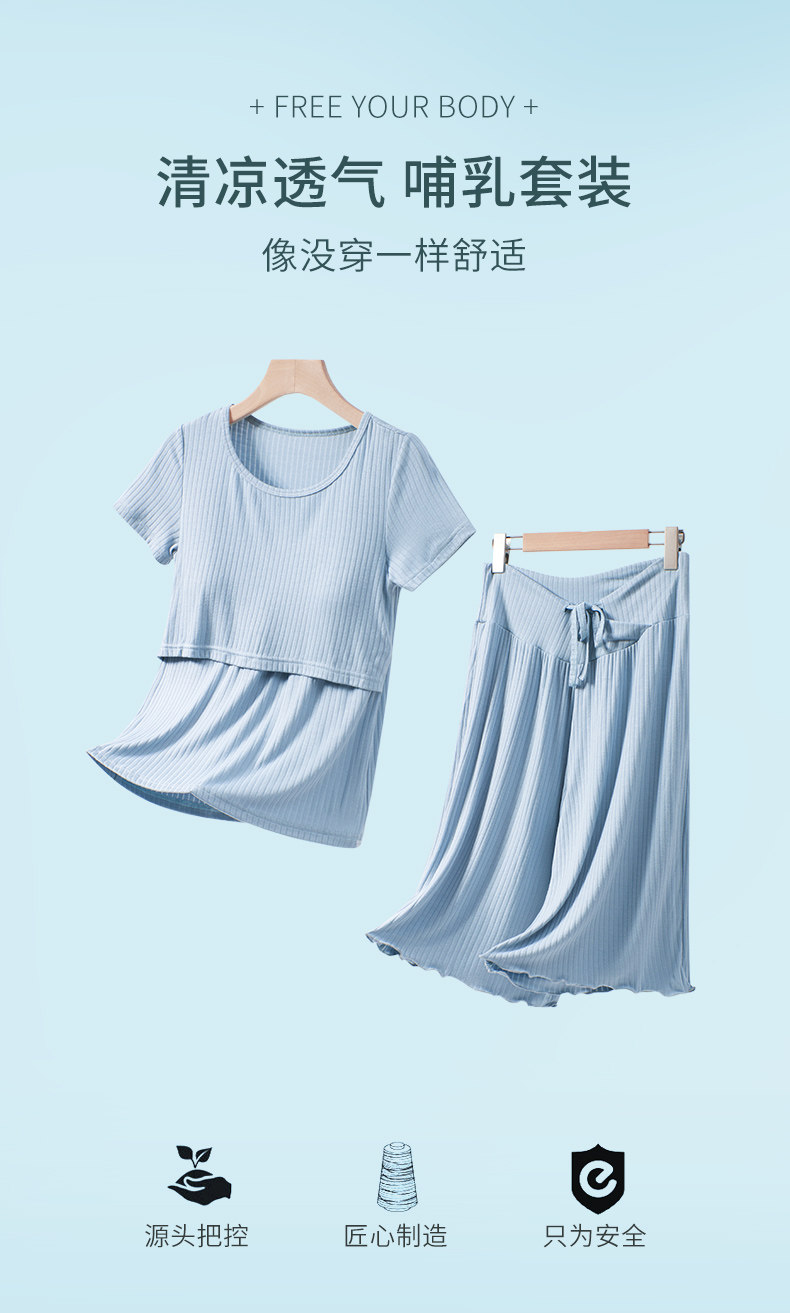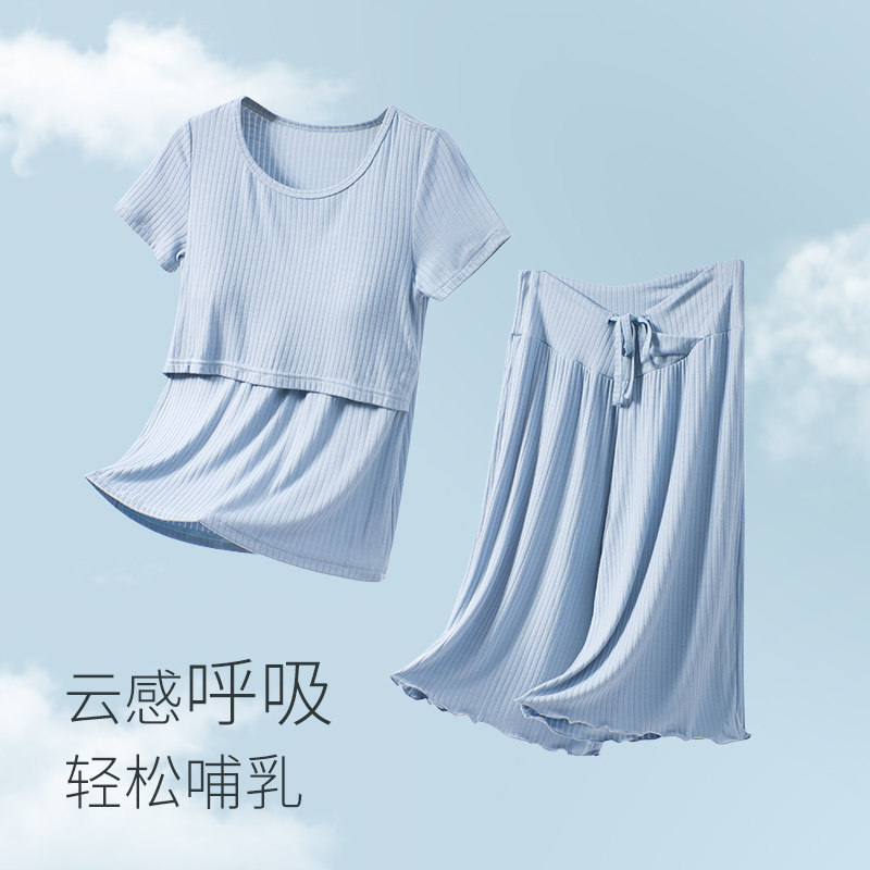 Летняя тонкая послеродовая пижама, комплект для кормящих грудью, летняя одежда для молодой матери, короткий рукав