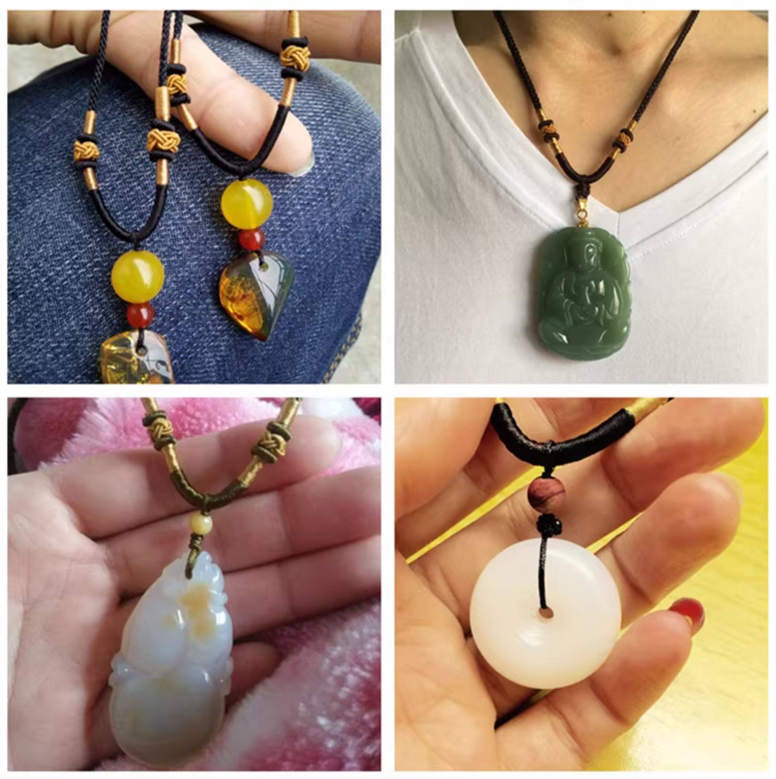 Плетеный ремешок ручной работы, изумрудная золотая подвеска из нефрита подходит для мужчин и женщин