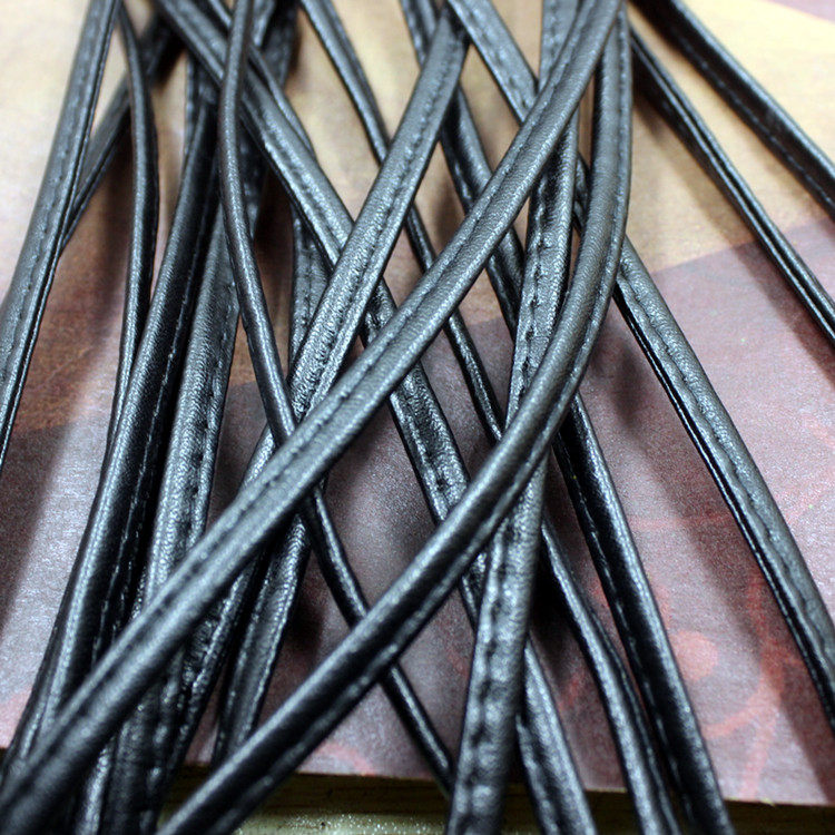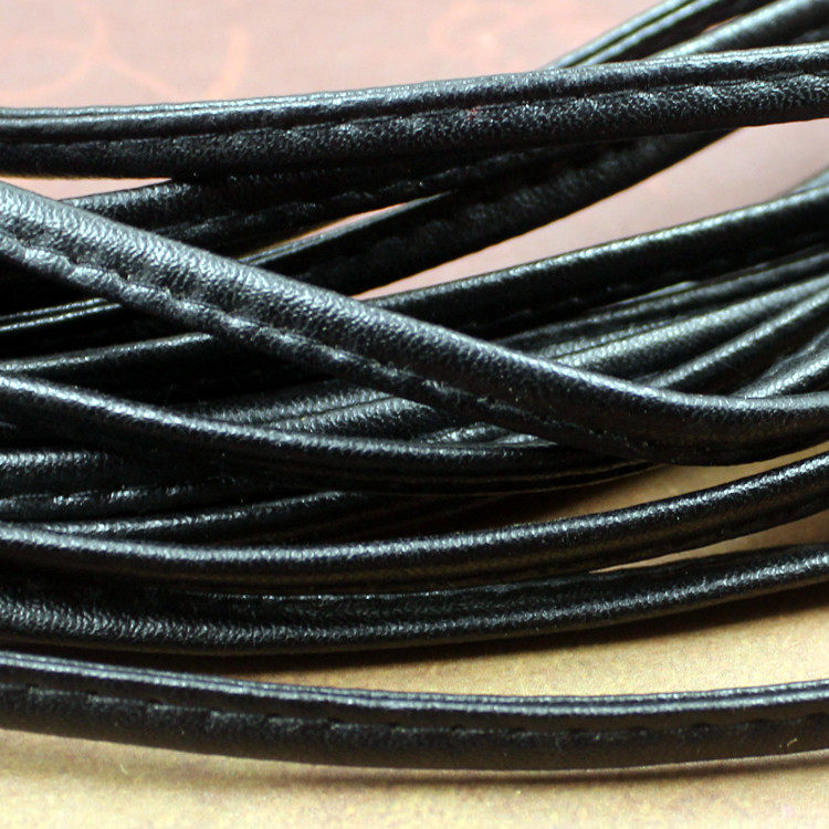 Черная коричневая кожаная веревка ручной работы ручной работы, плоская веревка кожа