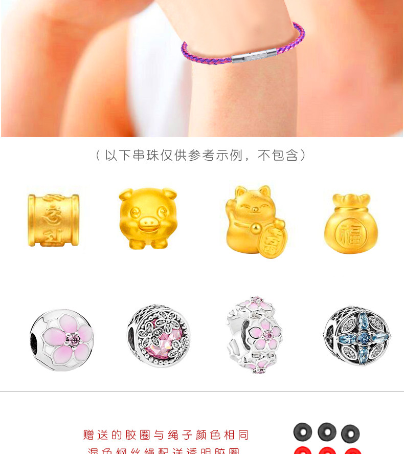 Водонепроницаемая стальная проволка, браслет с одной бусиной, сменный аксессуар, золотой браслет из бисера подходит для мужчин и женщин, 3D, для влюбленных