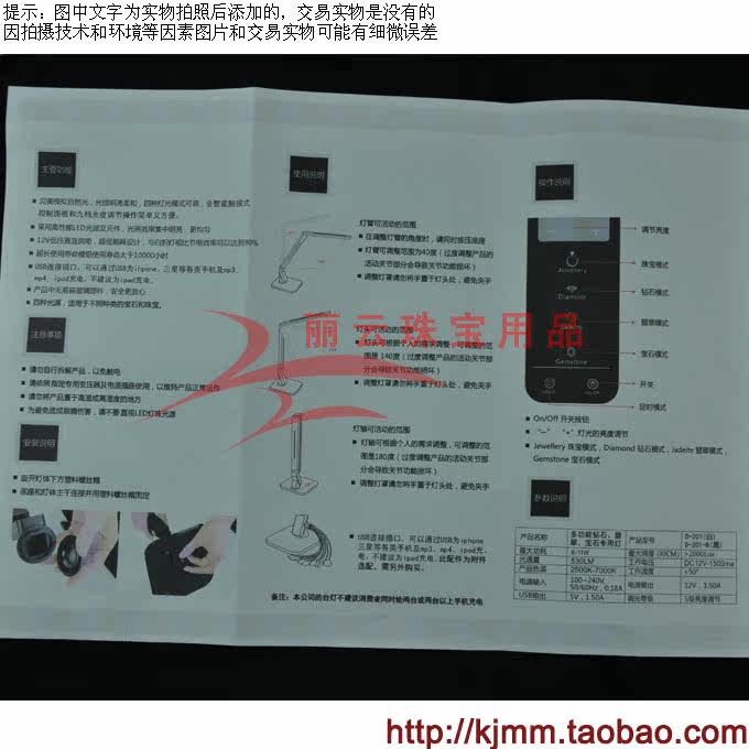 Свет яркий и мягкий, натуральный, и четыре световых мода ювелирных изделий, алмазов, изумруда и драгоценного камня можно отрегулировать. Панель управления на сенсорном типе можно отрегулировать. Интерфейс USB может быть заряжен для цифровых продуктов, таких как мобильные телефоны , который легкий и прост в эксплуатации.