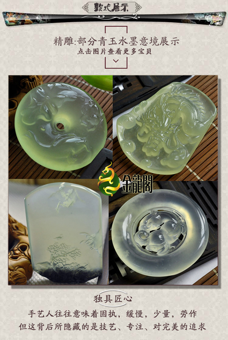 Павильон Jinlong -это профессиональная нефритовая индустрия на протяжении более 10 лет. Он интегрирован в продажу оптом Saitama. Она обрабатывается нефритом, полуфинационными продуктами, нефритовым отполированным и различными типами нефрита. Мастера. Сейко, резьба, от 1 до 1 обслуживания клиентов и отдельный сервис, продукт отдельно спроектирован в соответствии с камнем, с формой камня, избегайте растрескивания, красивой цвета, изысканной темы!