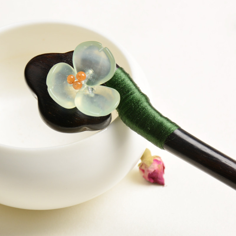 Классическая китайская шпилька из нефрита, природная руда, ципао, аксессуар для волос из черного дерева Эбен из сандалового дерева, китайский стиль