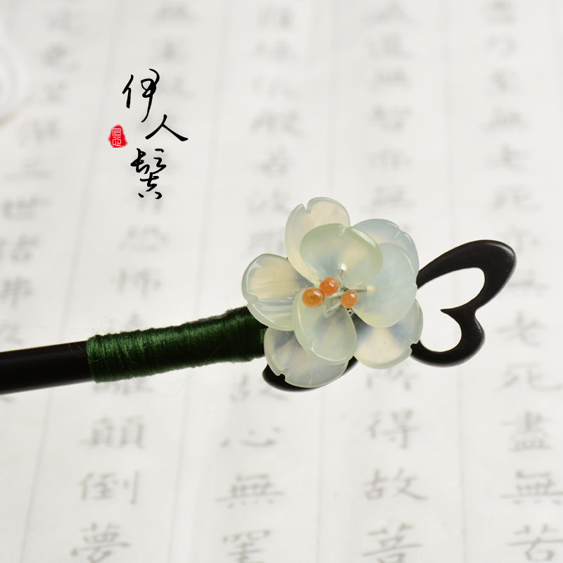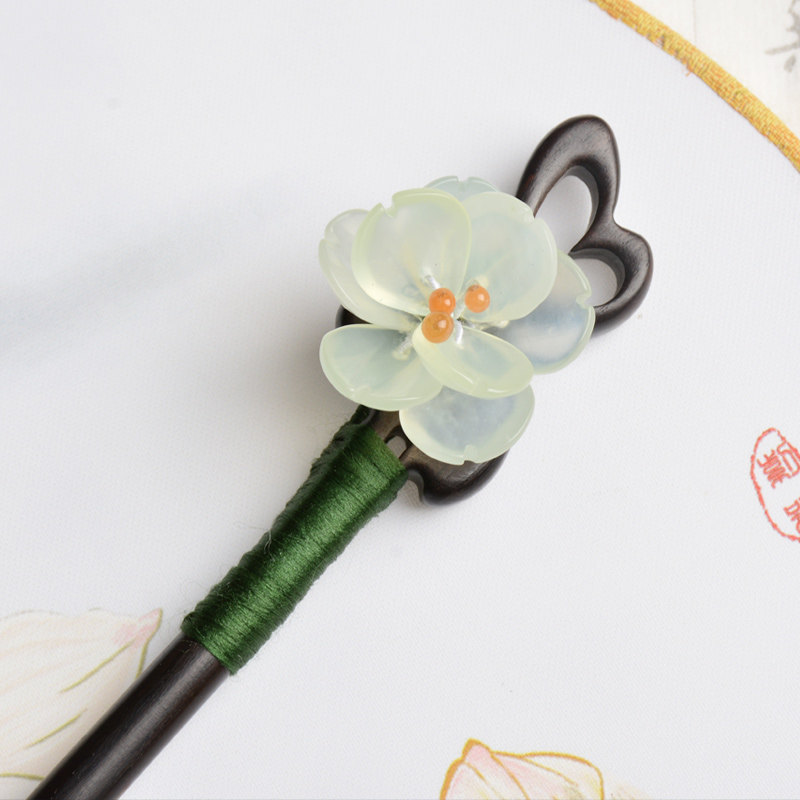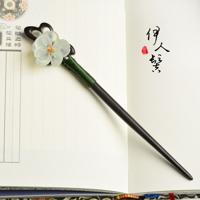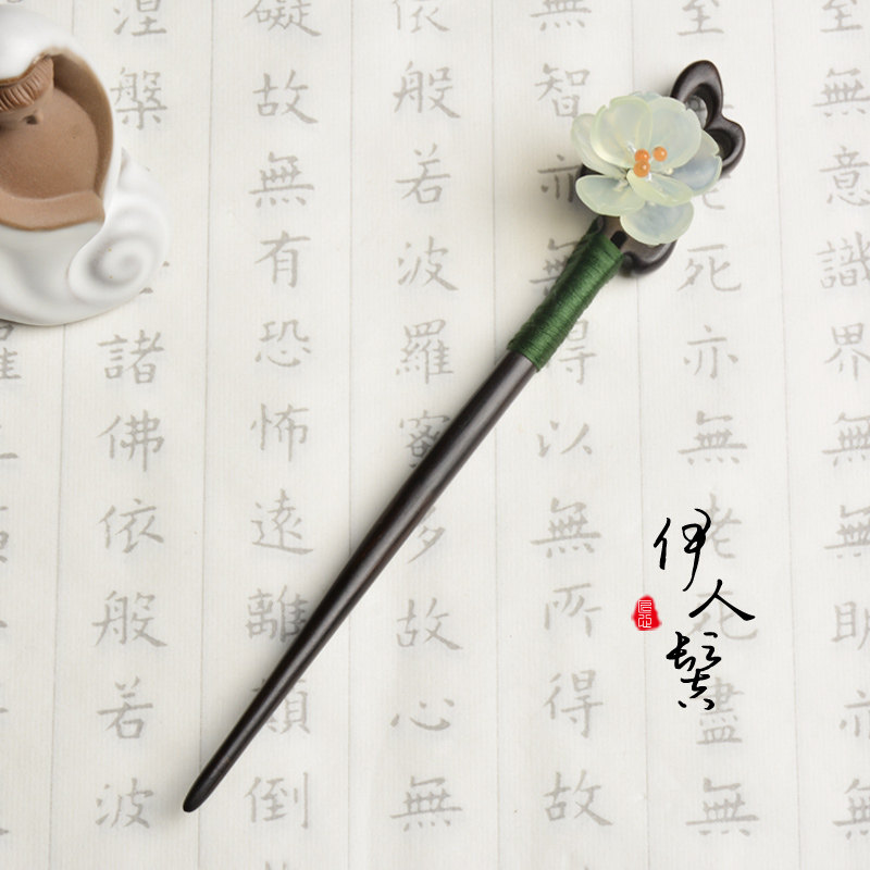 Классическая китайская шпилька из черного дерева Эбен из сандалового дерева, природная руда из нефрита, ципао, аксессуар для волос, в цветочек, китайский стиль