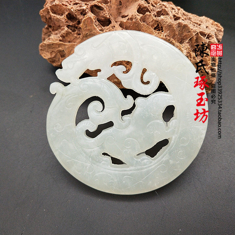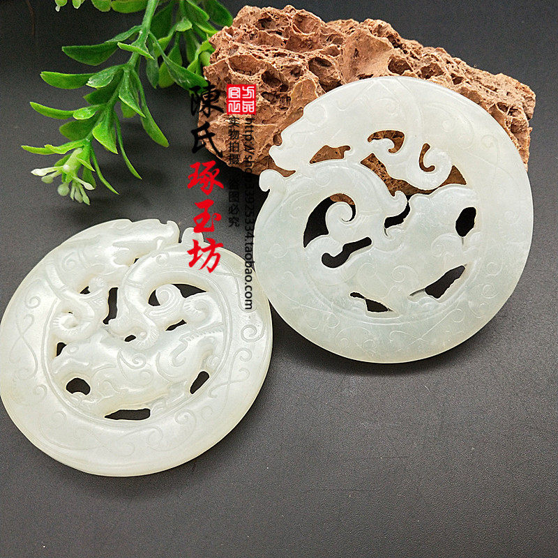 Двусторонное украшение в форме дракона из нефрита, антикварная подвеска