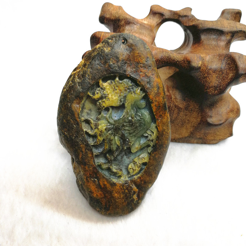 В СюйянеЭтот тремолитный нефрит обычно известен как Лаою, который разделен на два типа: горный материал и нефритовый реки.Часть или все нефритовое тело его характеристики обернуто каменными предметами, образованными с помощью почвы и выветриваемых.Это похоже на обычный камень на поверхности, но нефритовое качество такого нефрита нежна и маслянично в том же типе нефрита.В народном высказывании цветы должны соответствовать зеленым листьям, а формирование внешнего слоя этого нефрита становится хорошим партнером для внутреннего нефритового качества. Обработанные ремесленники еще более изысканны, и каждая часть является редким сокровищем.