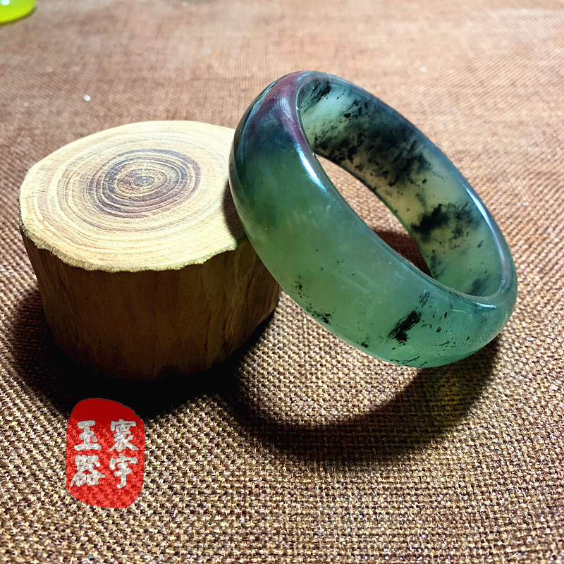Натуральный весенний нефрит 180 зеленый материал чернила, дрейфующие зеленый нефритовый браслет, Версия 59 Калибр 22 Ширина Зеленый лед материал