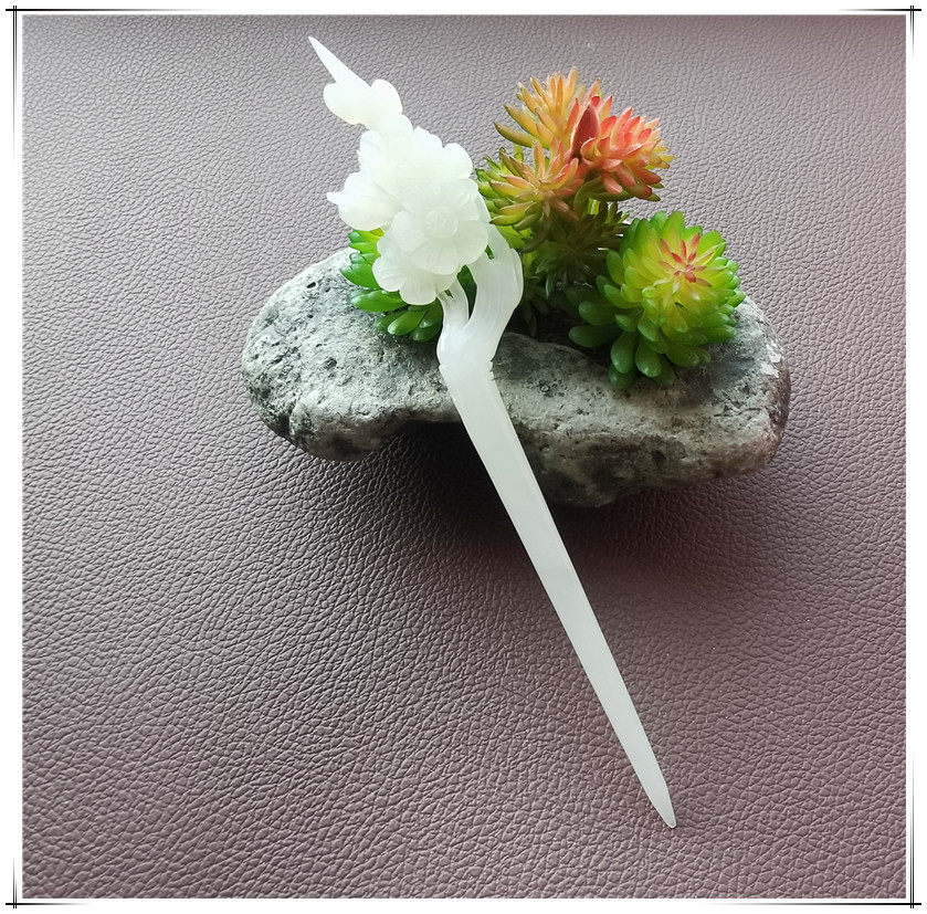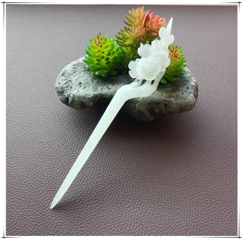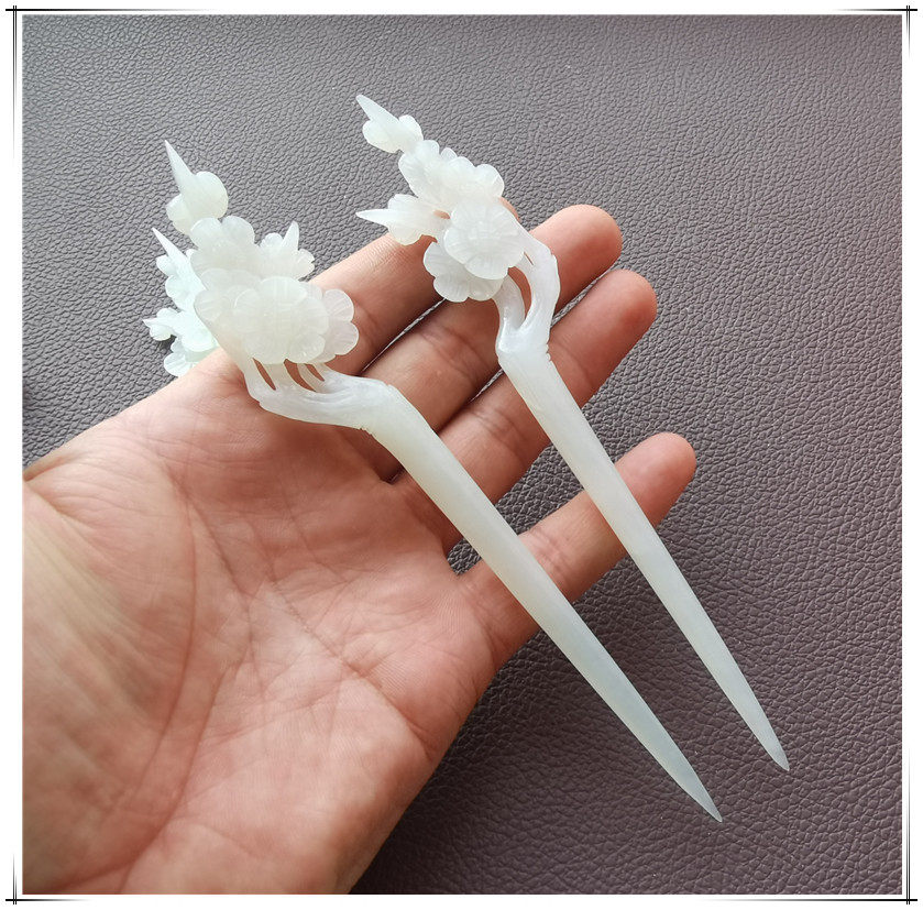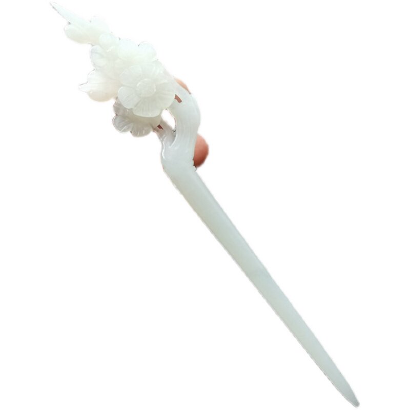 Натуральная китайская шпилька ручной работы с кисточками из белого нефрита, ханьфу, аксессуар