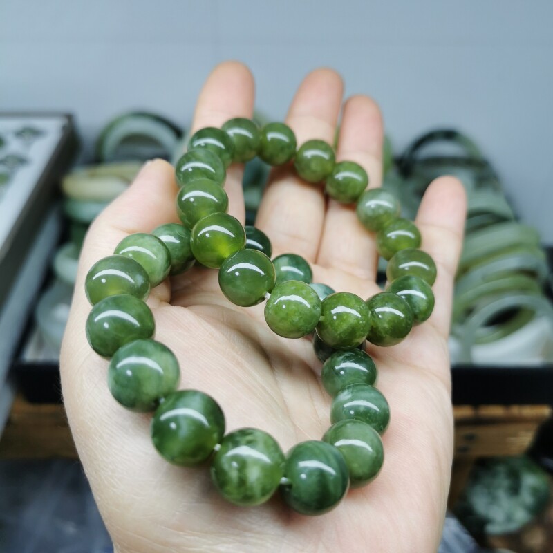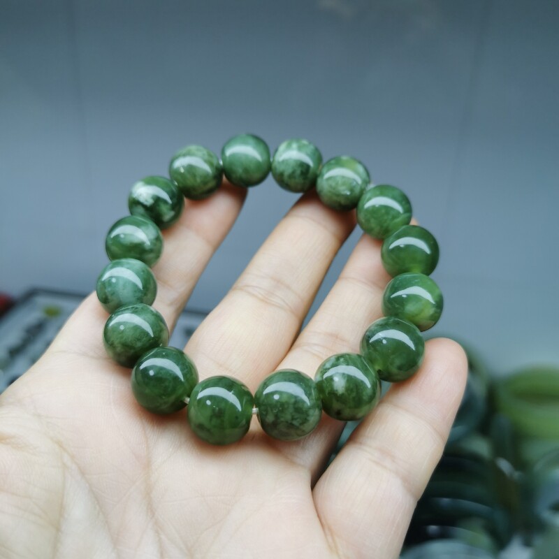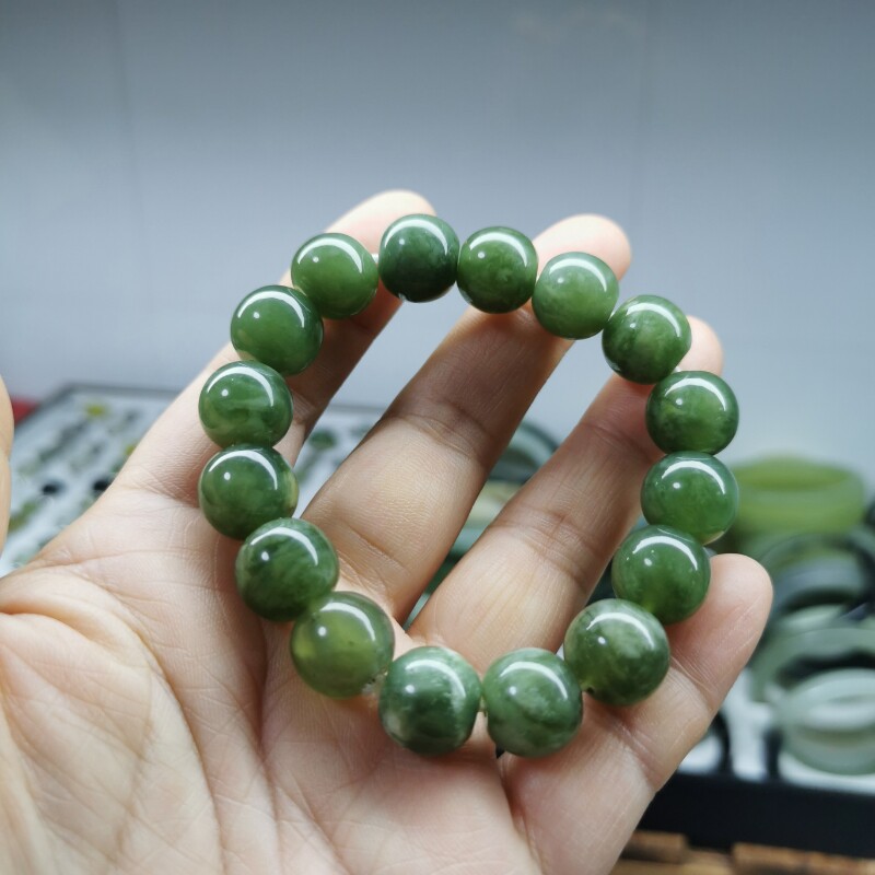 Украшение-шарик из нефрита, браслет из бусин, зеленая натуральная реплика, диаметр 12.5мм, 12.5см