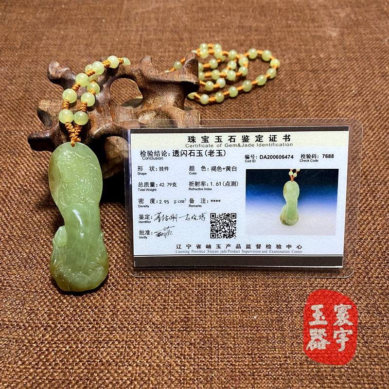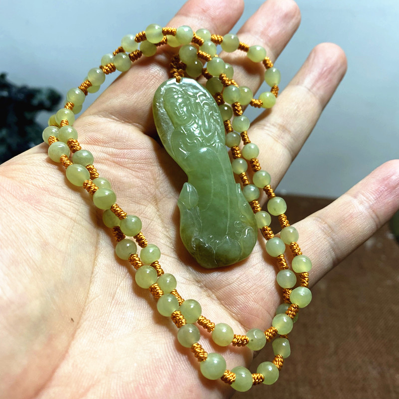 Природная весна Джейд Хуан Бай Лаою Станция Гуаньян Бао пингана пинганом, составленной старой нефритовой цепи, есть сертификат без черной точки, богатство богатства широко распространено