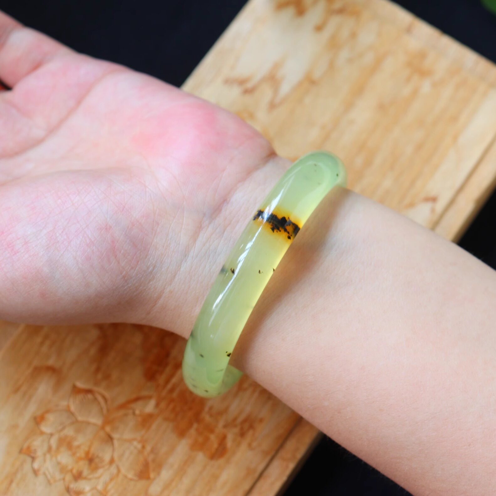 Владелец магазина сказал, что браслет из натурального высокопрозрачного кленового листа и травяного нефрита Отличный браслет из старого материала, очень красивый в жизни. Фотография просто выглядит не очень хорошо. Этот материал сейчас редко встретишь. Этот цвет имеет приятный нефритовый оттенок Все еще красивый нефрит Он очень жирный, на браслете нет трещин, это хороший материал, который не пропускает воду и не теряет цвет. Особенно после начала, это выглядит великолепноСущность