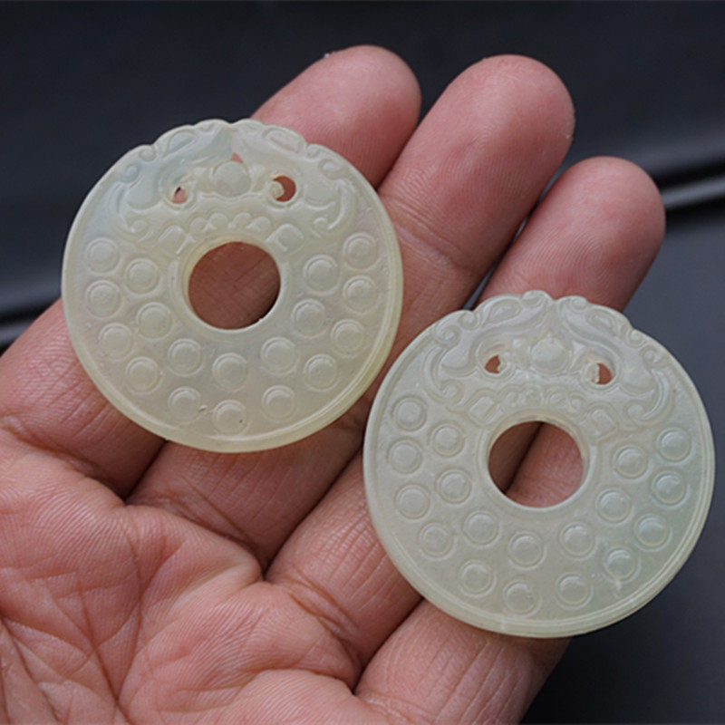 Украшение в форме дракона из нефрита, антикварная двусторонная подвеска, защитный амулет, пряжка с кисточками