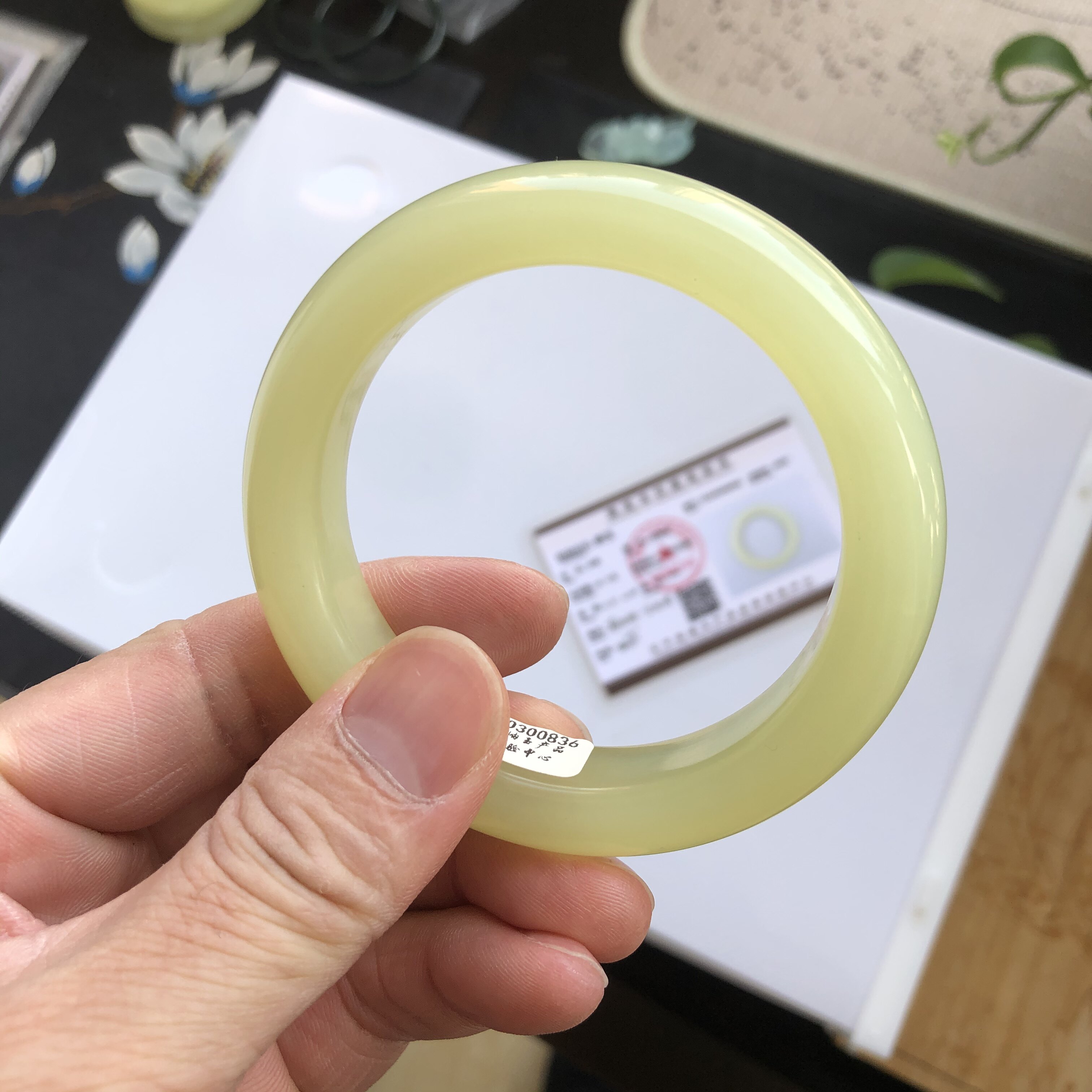 Владелец сказал, что браслет естественного крестца Liaoyang - это уникальное нефритовое качество Ощущение масла масла очень тепло Материал из натурального светло -желтого цвета очень удобен Это сочетание гетиана Джейд, Хуанбай Лаою и воды масляничного и блюдца Этот браслет становится все более и более масляным.