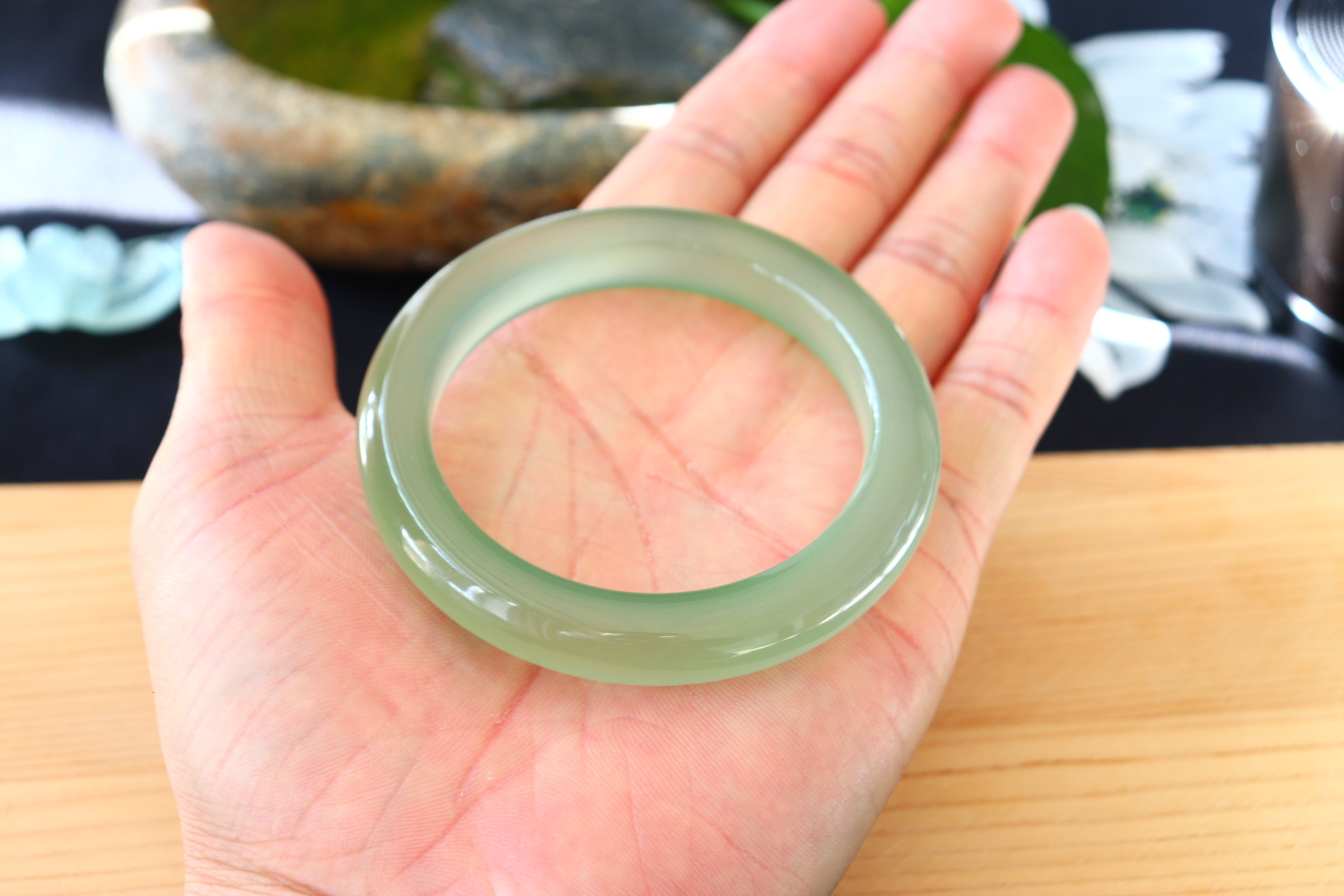Владелец магазина сказал, что подлинный лазурно-зеленый браслет из нефрита Сю из старого материала имеет цвет, похожий на воду озера Цинху, и браслет на ощупь мягкий и влажный. Сейчас такие браслеты встречаются практически редко. Браслет из старинных материалов. Качество нефрита очень хорошее. Он очень крутой и прозрачный. Настоящая вещь очень красивая Будет натуральный ватин и никаких трещин. Нефритовые браслеты отличного качества. Если они вам нравятся, не пропустите. Все браслеты в магазине тщательно отобраны. Вы можете быть уверены, что качество гарантировано. Полный продукт рекомендовать