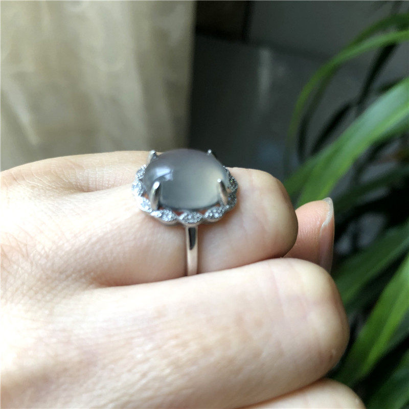 Натуральное кольцо из нефрита, серебро 925 пробы