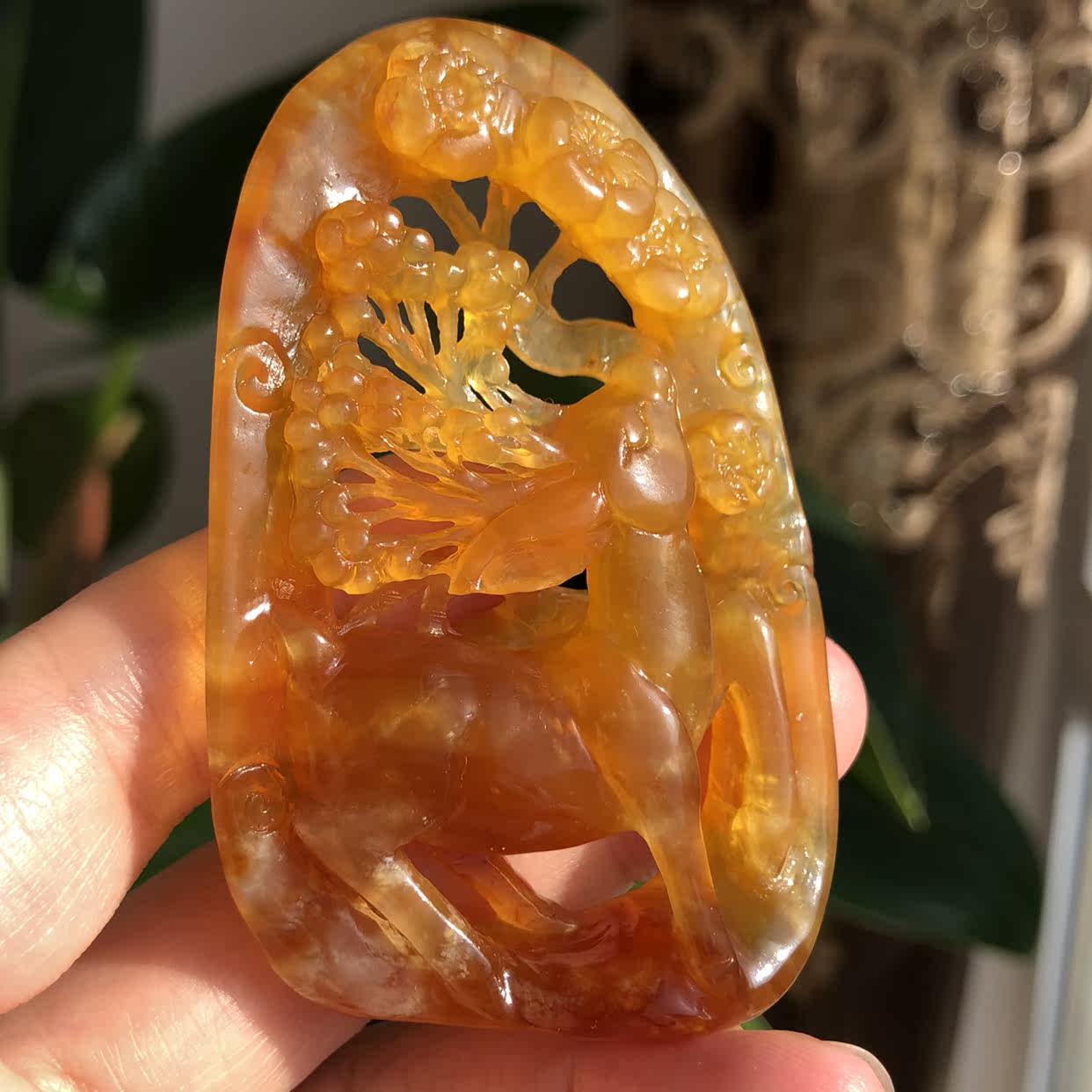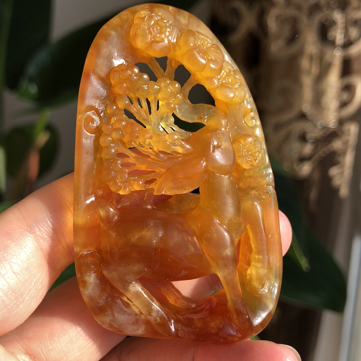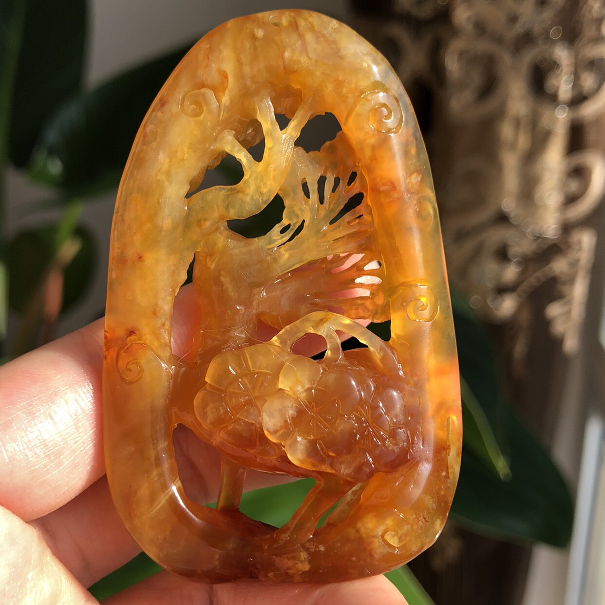 Натуральная двусторонная резная подвеска из нефрита ручной работы