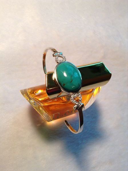 Натуральный бирюзовый браслет из натурального камня, изысканная инкрустация камня с цирконом, серебро 925 пробы, стиль