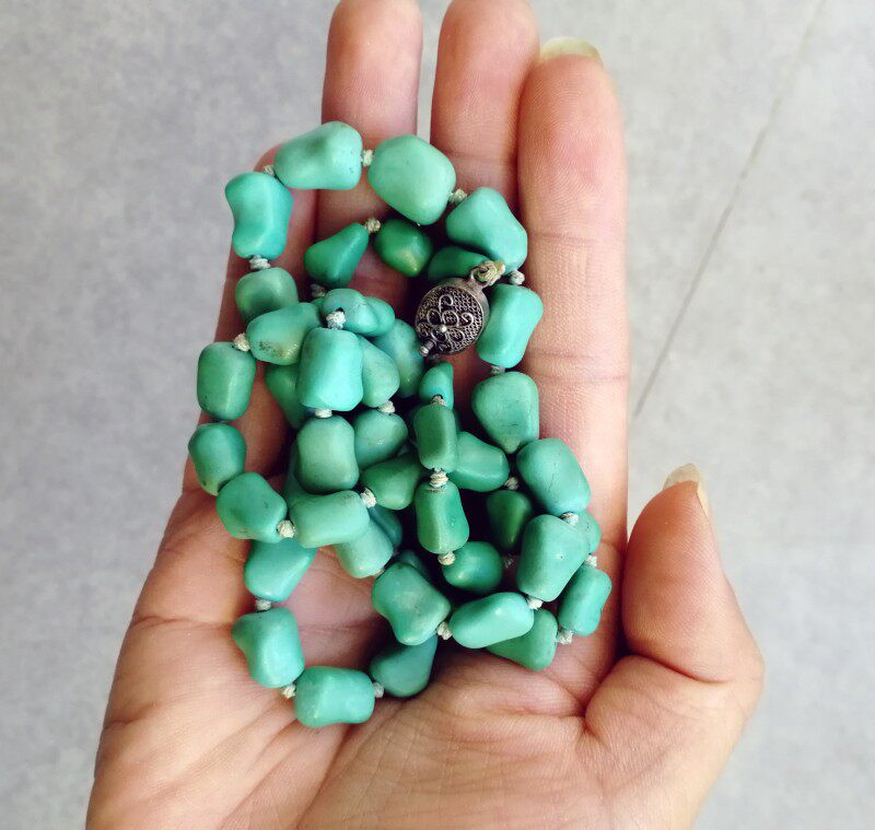 Антикварное высококачественное натуральное бирюзовое ожерелье, серебро 925 пробы, 50 грамм